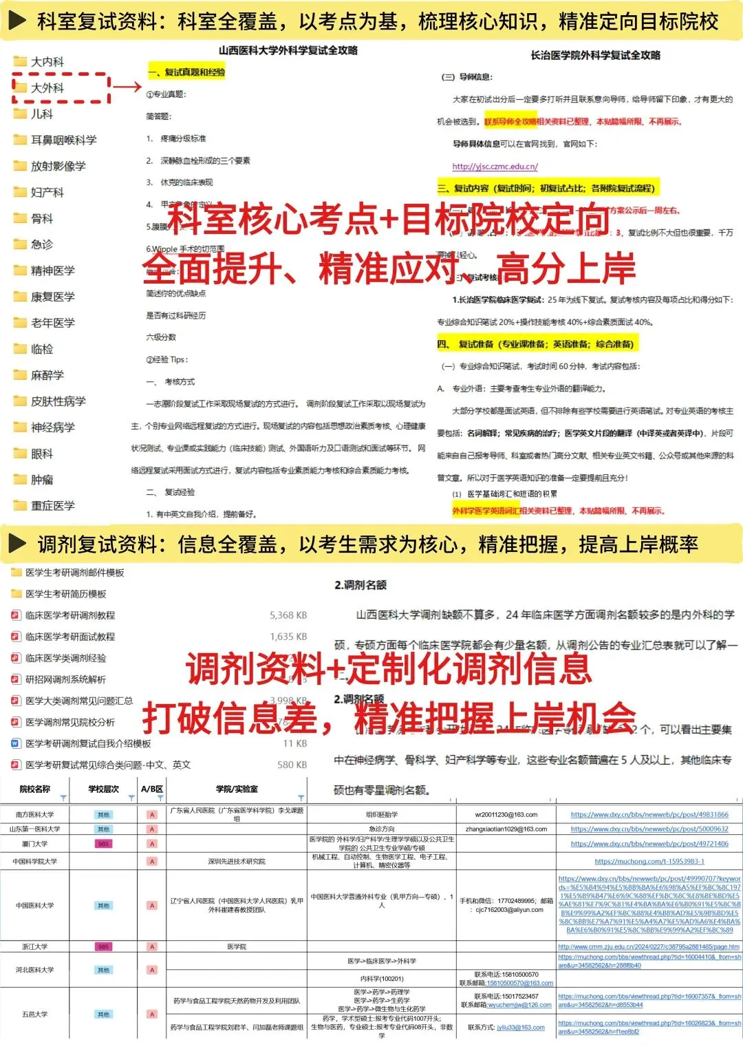 一、招生分析篇:招生政策(能不能跨考等)、院校情况(各附属医院的优势学科等)