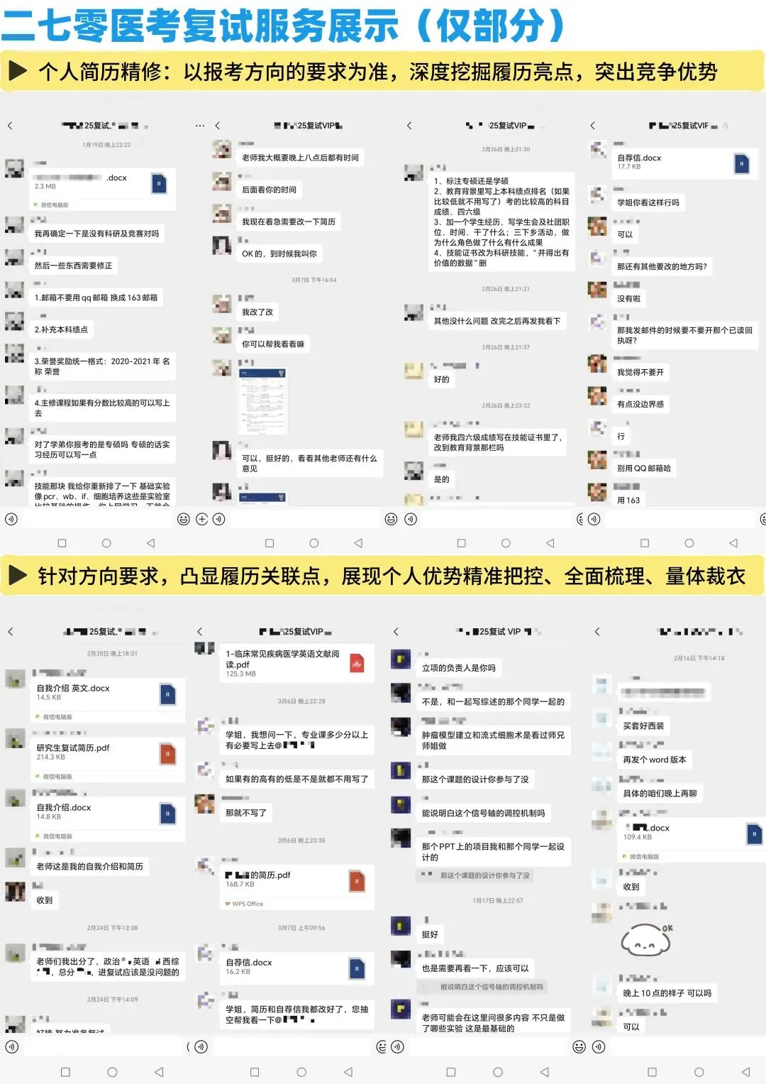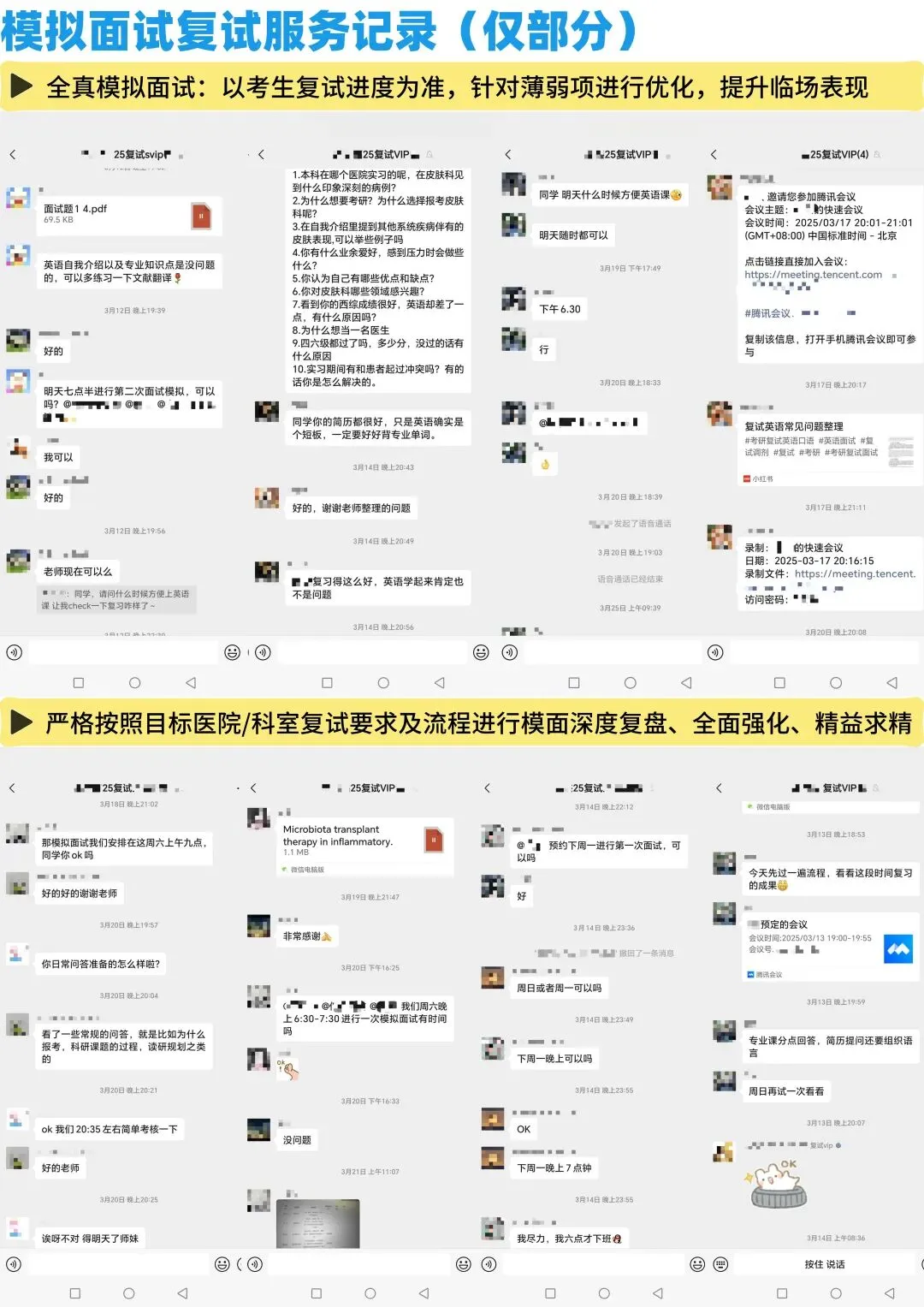 随便截几张图;另外,因为很多同学是初试报的我们的班,复试也跟着我们走,所以这一部分除了初试的服务记录外,还有一部分我们的复试服务记录。