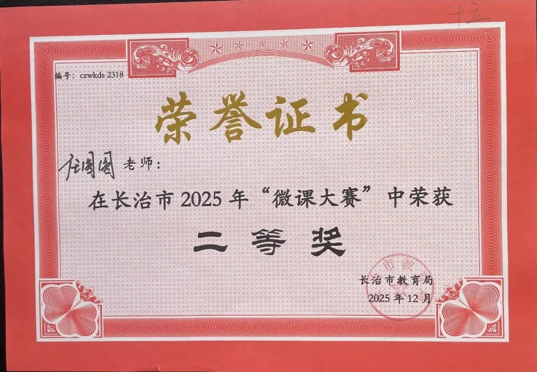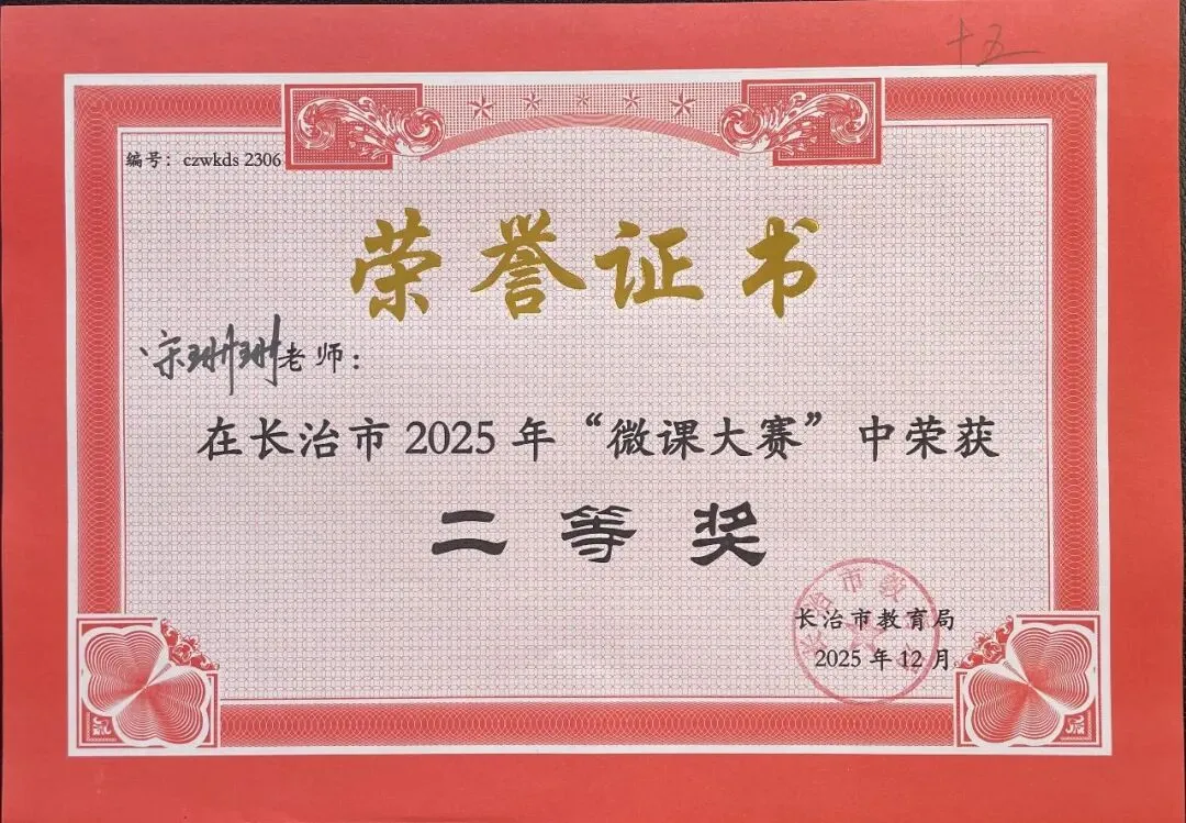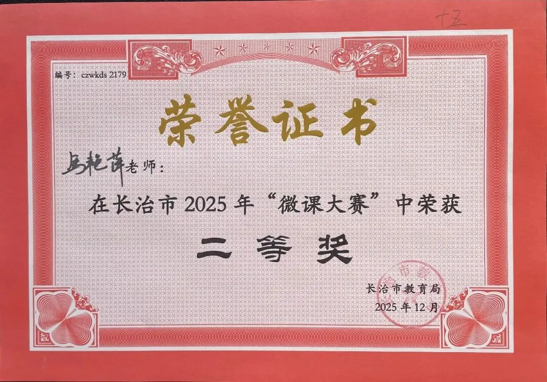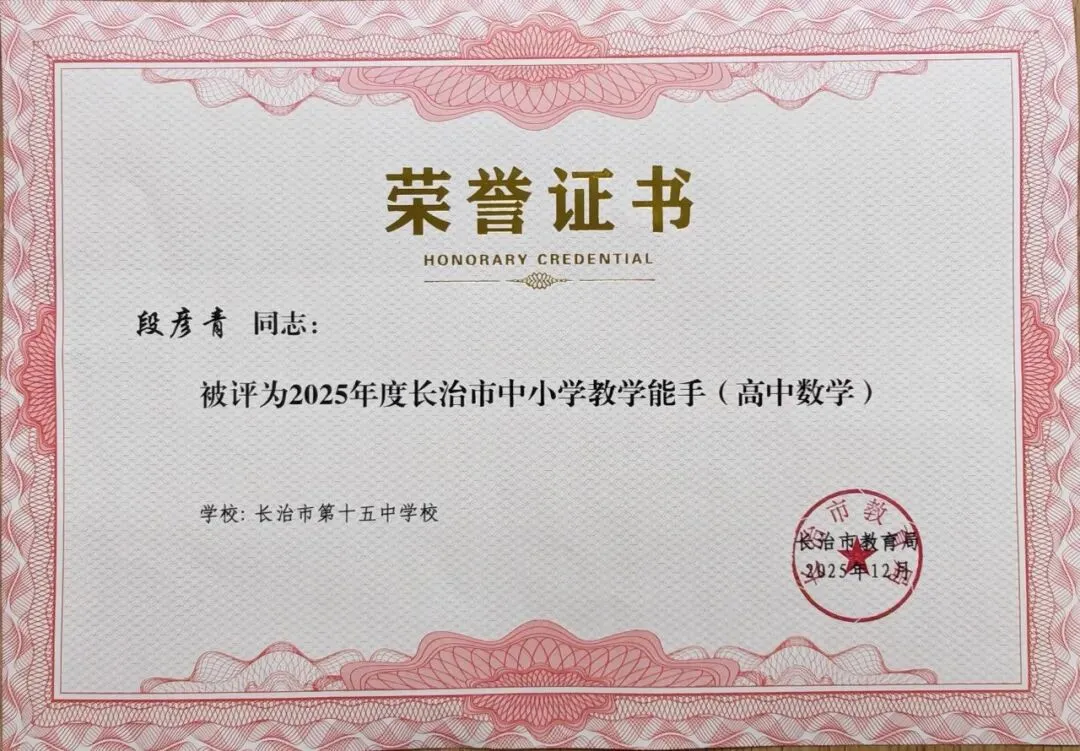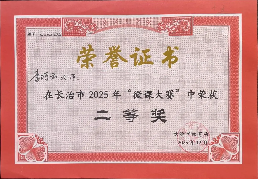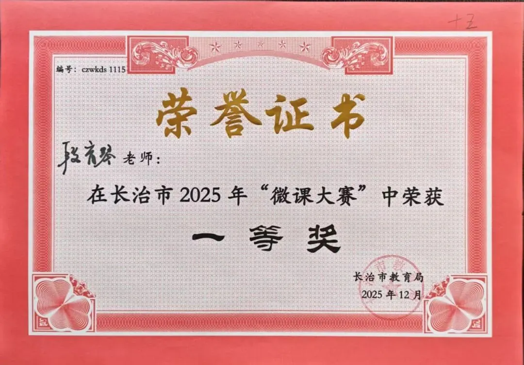 一份份荣誉,是师生们匠心耕耘的见证;一次次突破,是学校育人之路的坚实脚印。全体获奖教师一定会珍惜这份荣光,以梦为马、再接再厉,在成长与育人的道路上续写新的辉煌!长治市十五中全校教职工必将以获奖教师为榜样,立足教育岗位,潜心教研、深耕细作,不断提升教育教学质量与专业素养,推动学校教科研工作与育人事业高质量发展,绽放更耀眼的光芒!