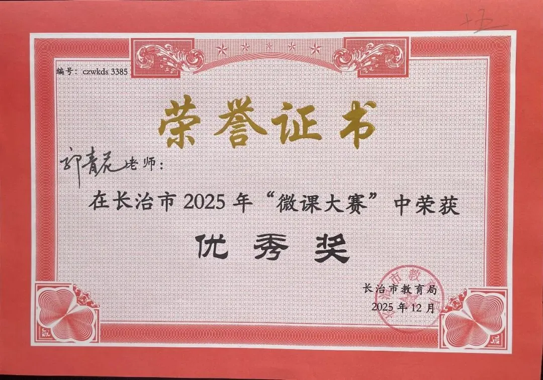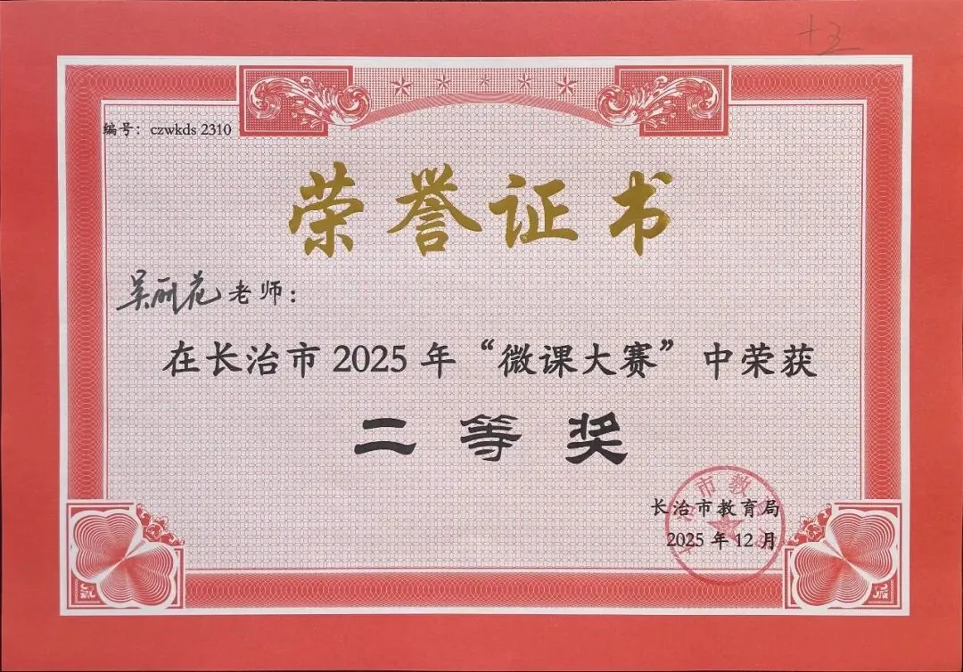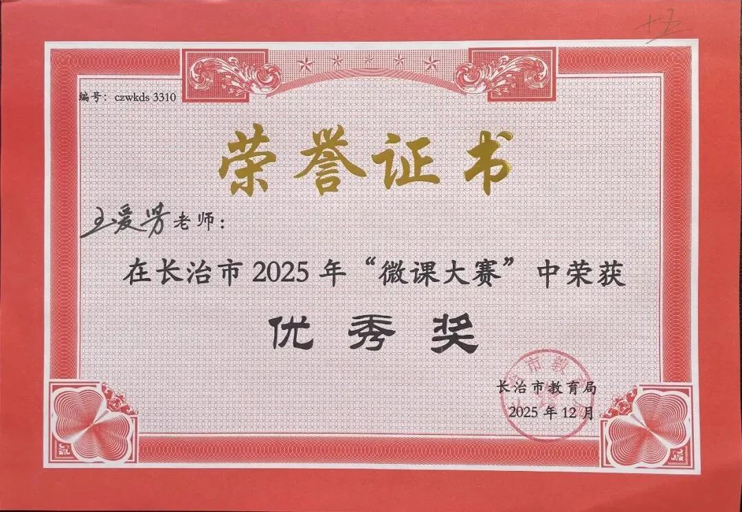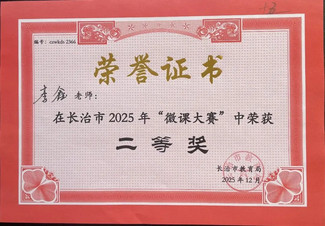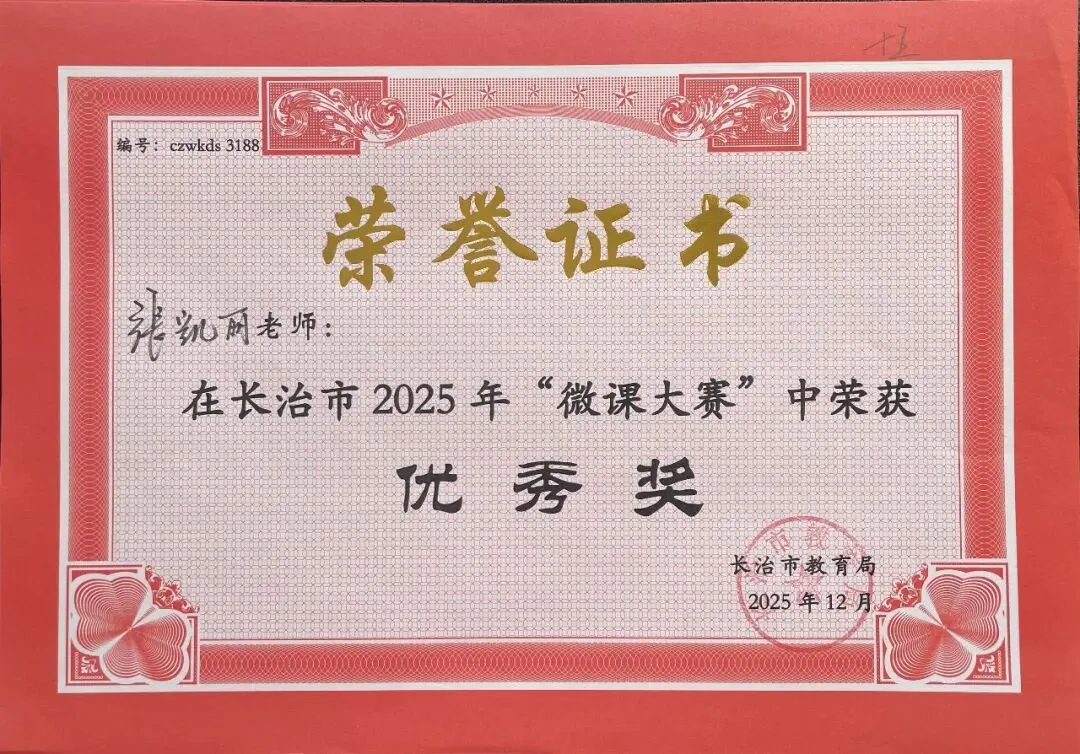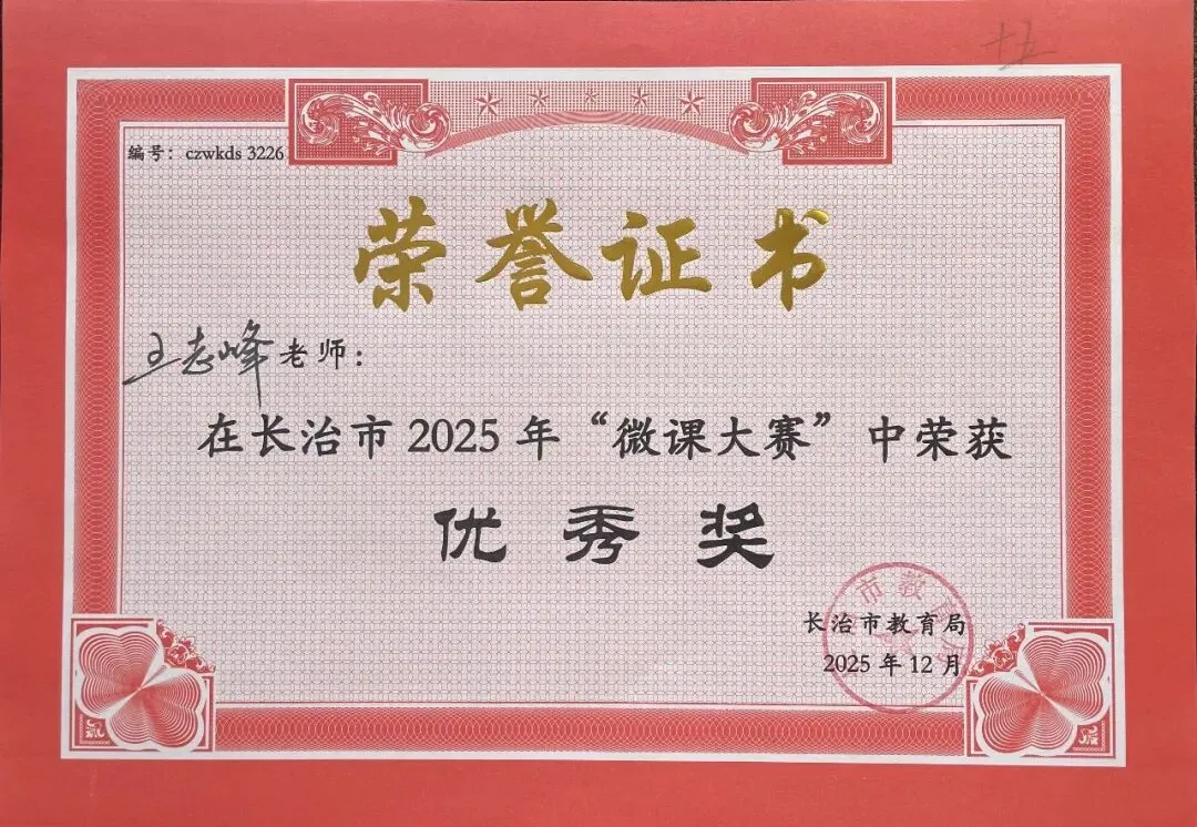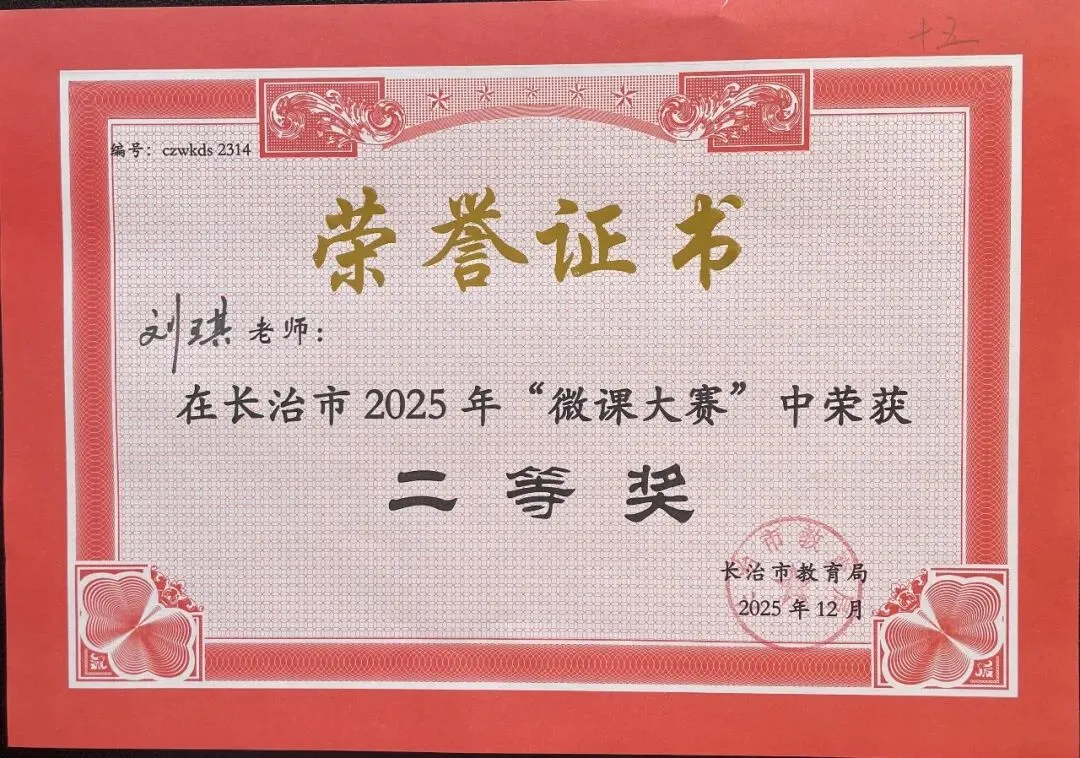一份份荣誉,是师生们匠心耕耘的见证;一次次突破,是学校育人之路的坚实脚印。全体获奖教师一定会珍惜这份荣光,以梦为马、再接再厉,在成长与育人的道路上续写新的辉煌!长治市十五中全校教职工必将以获奖教师为榜样,立足教育岗位,潜心教研、深耕细作,不断提升教育教学质量与专业素养,推动学校教科研工作与育人事业高质量发展,绽放更耀眼的光芒!