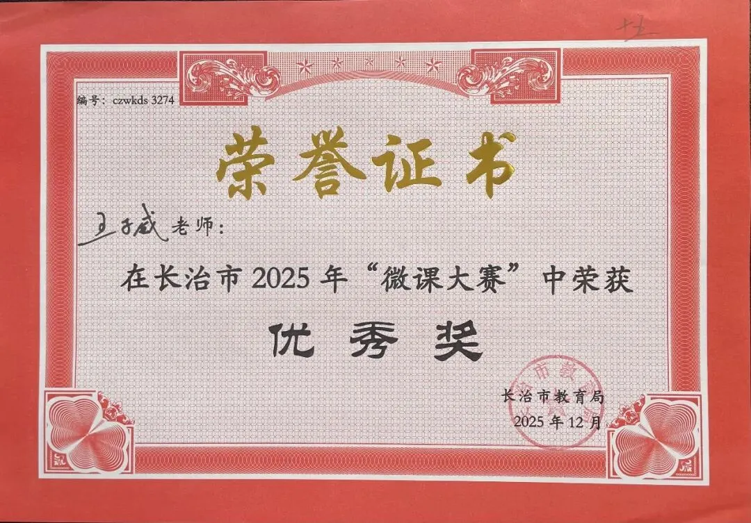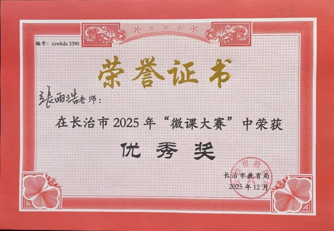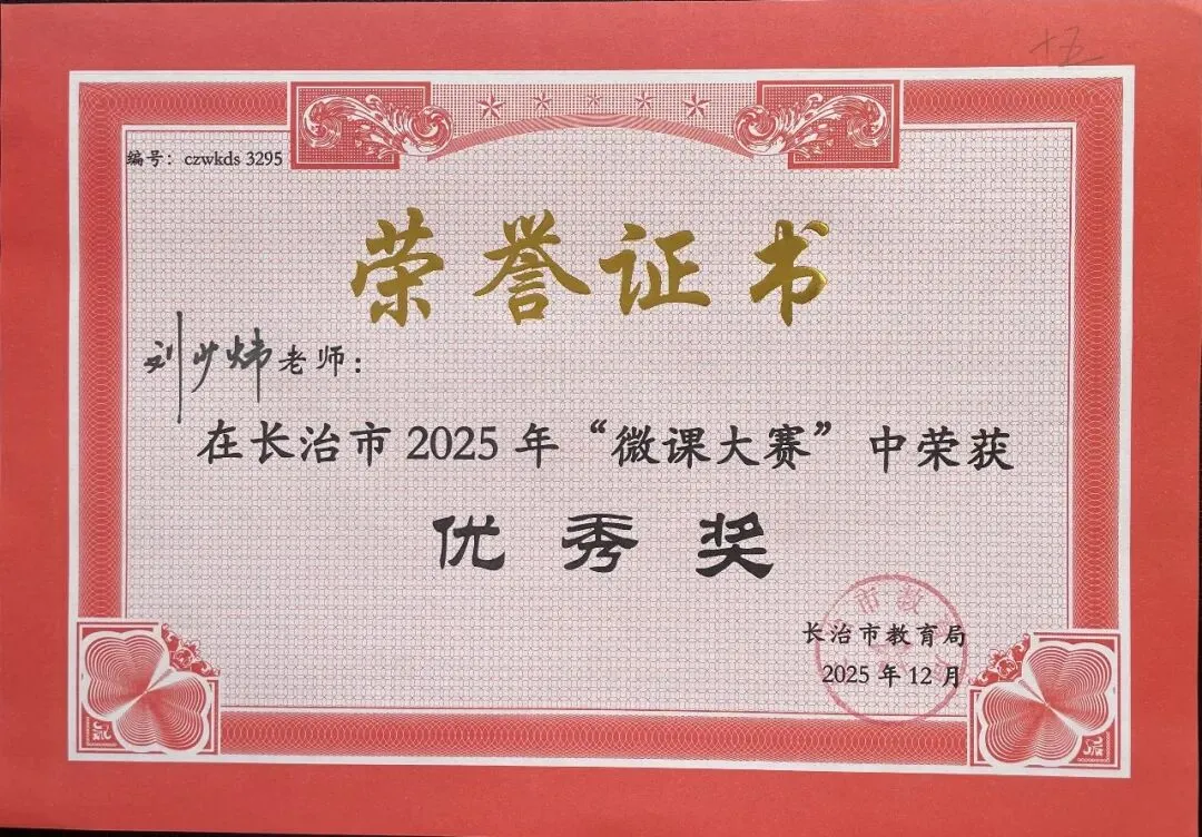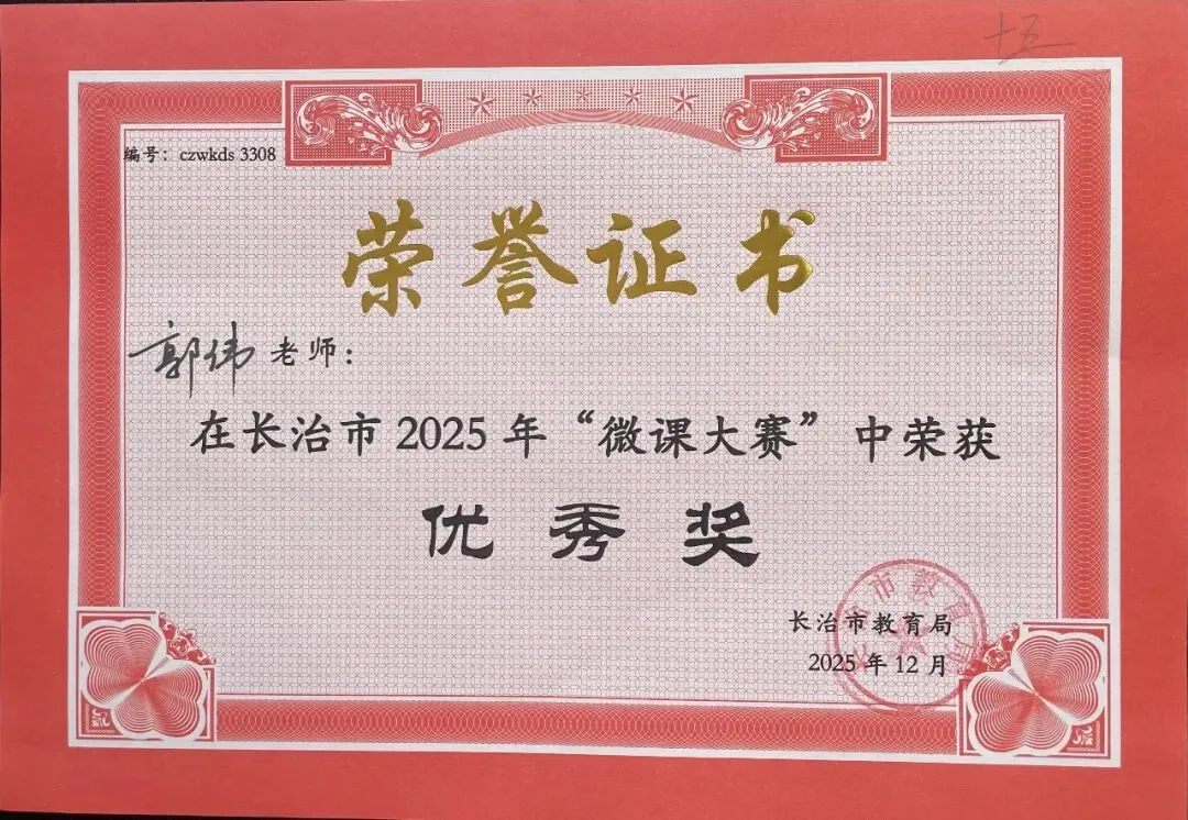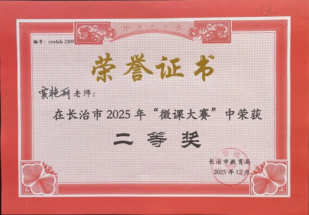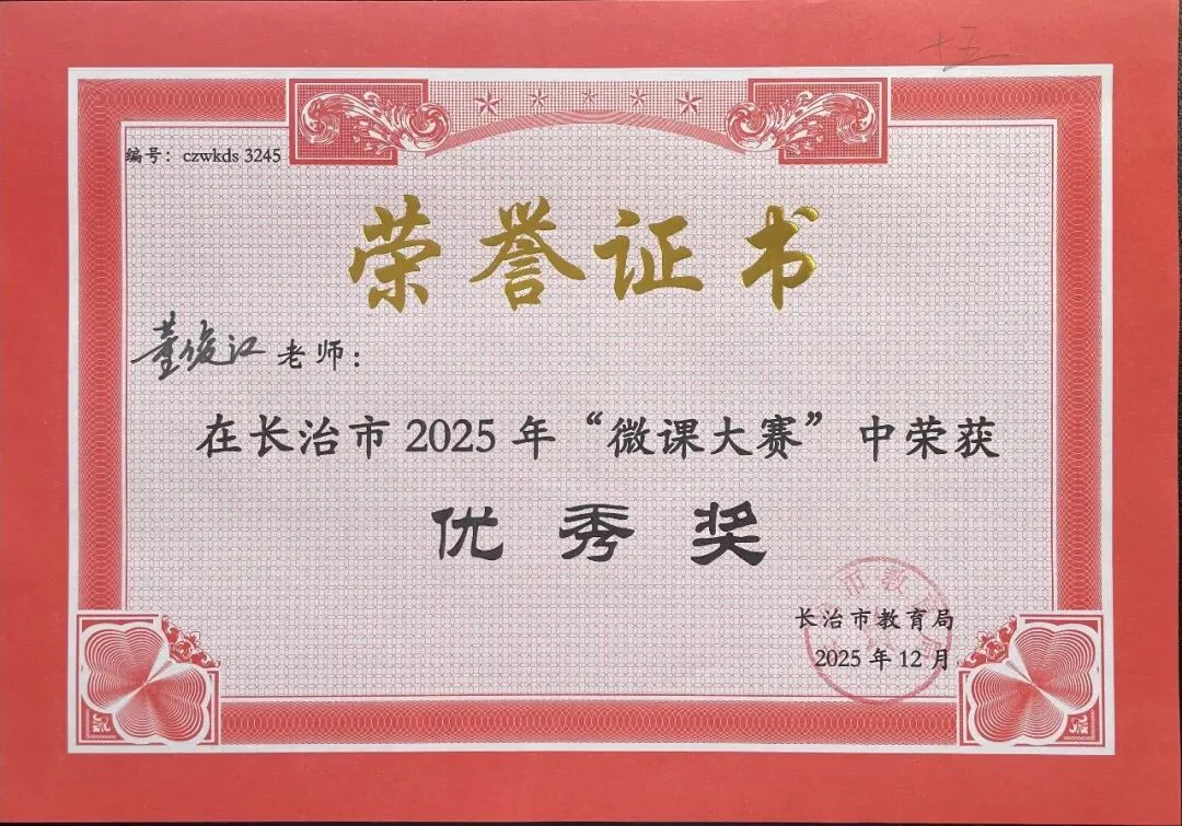 一份份荣誉,是师生们匠心耕耘的见证;一次次突破,是学校育人之路的坚实脚印。全体获奖教师一定会珍惜这份荣光,以梦为马、再接再厉,在成长与育人的道路上续写新的辉煌!长治市十五中全校教职工必将以获奖教师为榜样,立足教育岗位,潜心教研、深耕细作,不断提升教育教学质量与专业素养,推动学校教科研工作与育人事业高质量发展,绽放更耀眼的光芒!