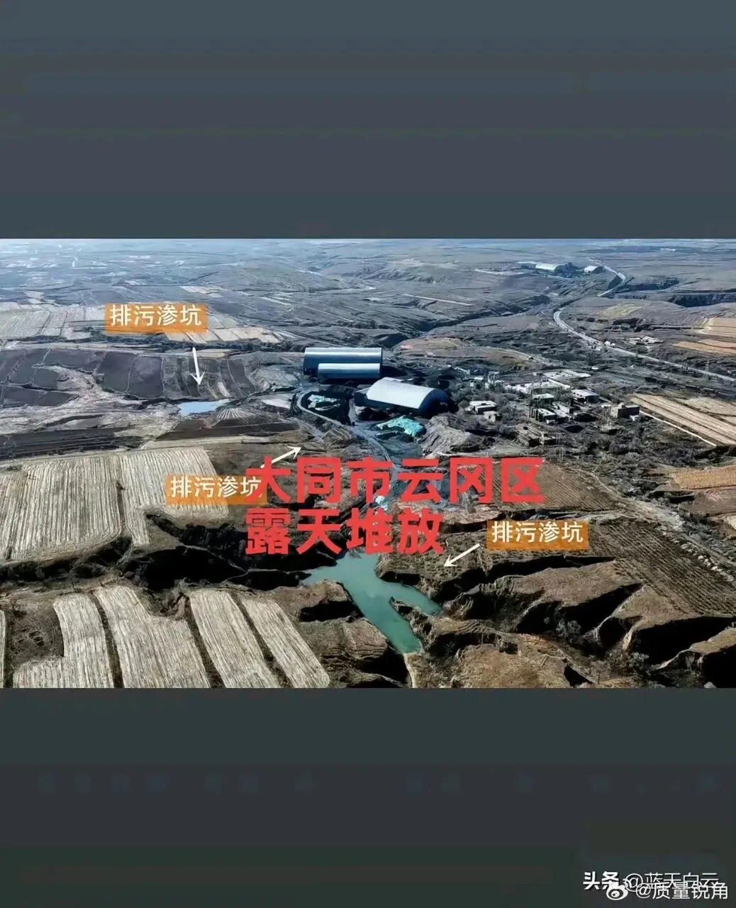 >山西省大同市云冈区榆涧村的一家洗煤企业厂区,厂区内外露天堆积着上万吨粉煤.乱倒煤矸石,存在严重散乱污