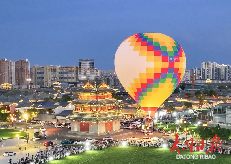 夏夜里,当晚霞将古城建筑晕染成迷人的金色,游客们登上热气球,在空中邂逅古城的浪漫。风拂吊篮,直上云端,俯瞰大同古城,格外壮美壮观;伴随着动感的音乐声,外观炫酷的古城音乐巴士环游古城,许多游客登上这座“移动的派对”,随着节奏轻轻摇摆,仿佛置身于一场流动的音乐夜宴。