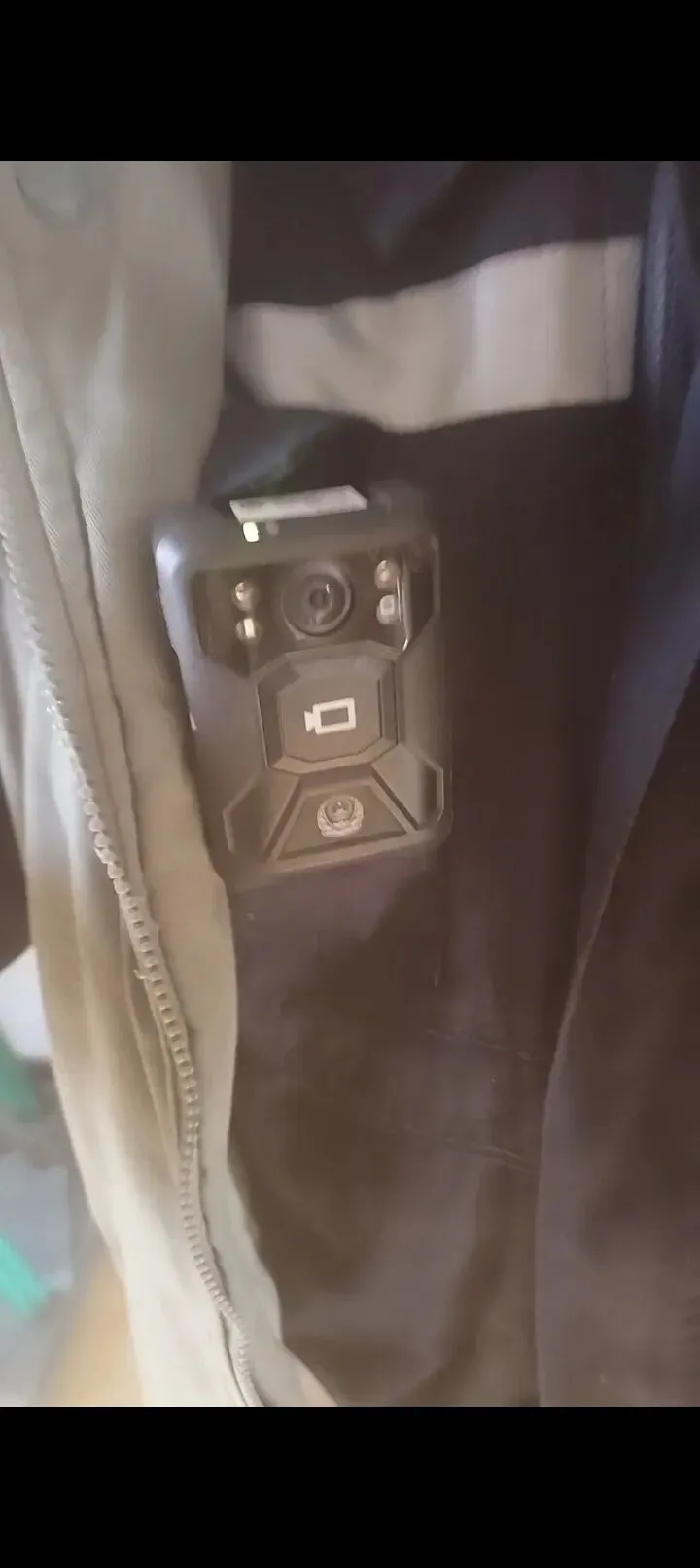 携带的记录仪上印着警徽