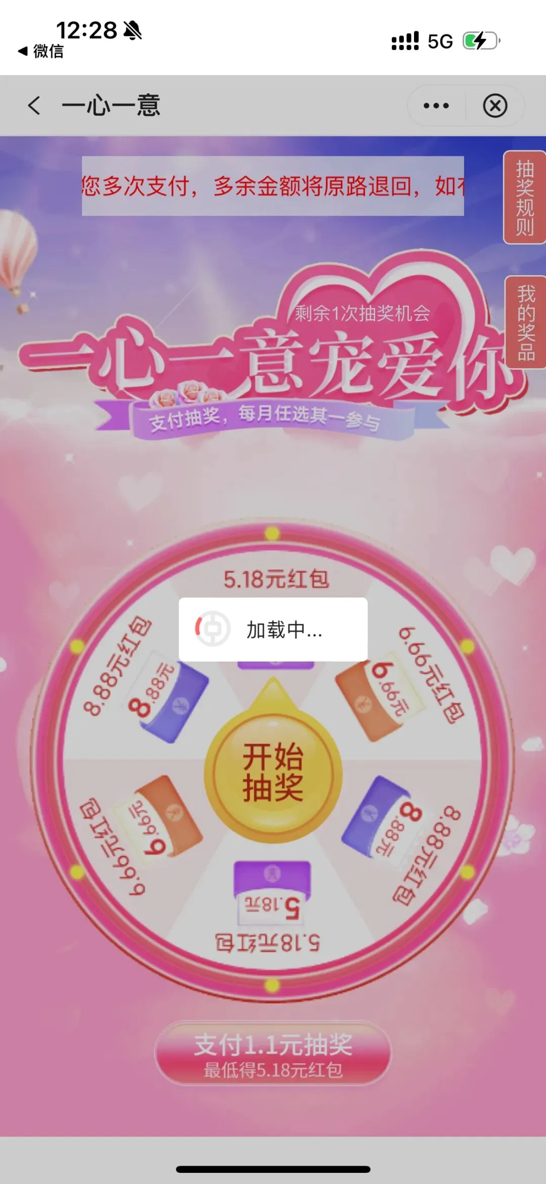 中国银行的,点那个一心一意宠爱你,支付1快钱最低获得5.18快,好像每个月都有,大家可以试一下