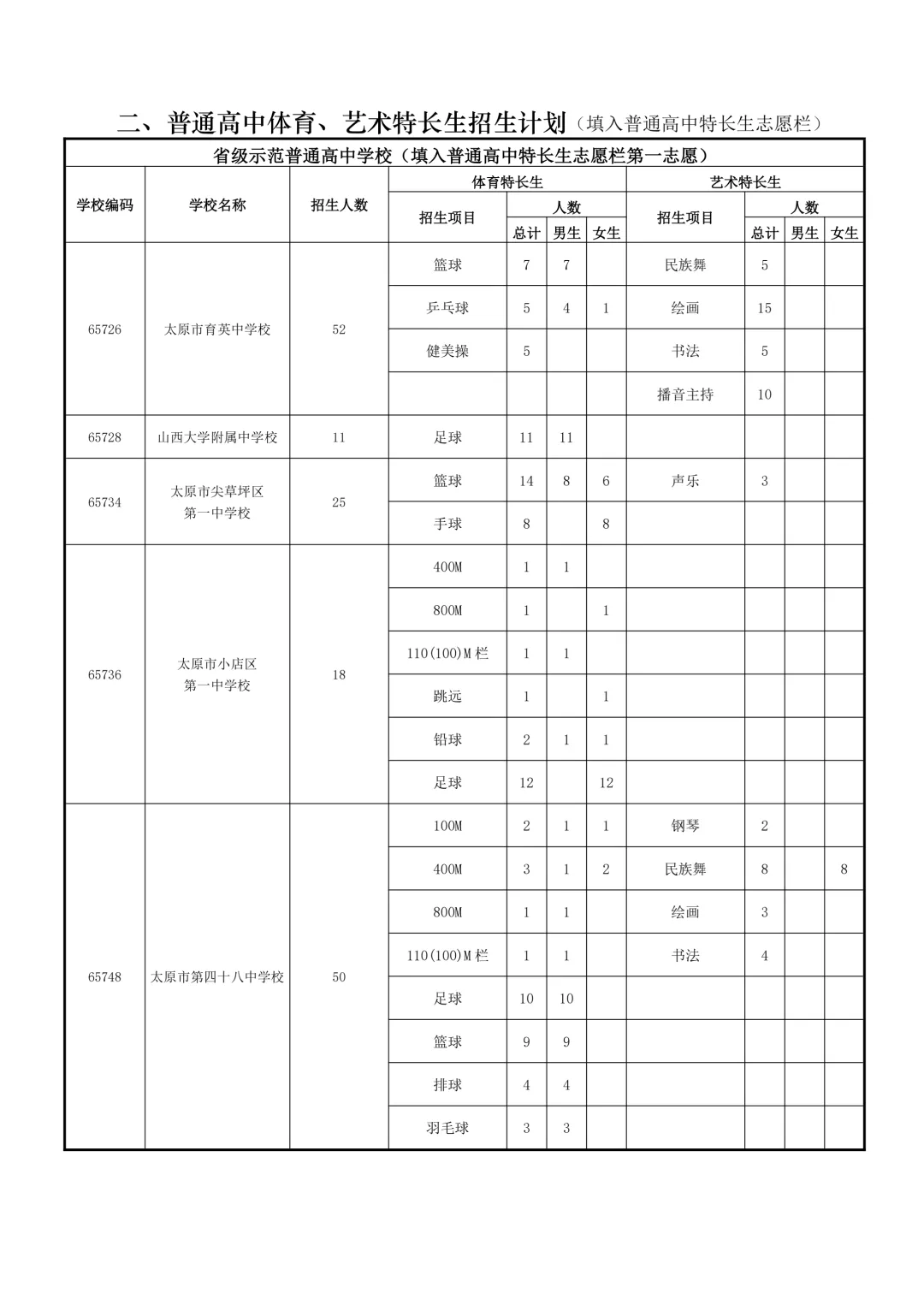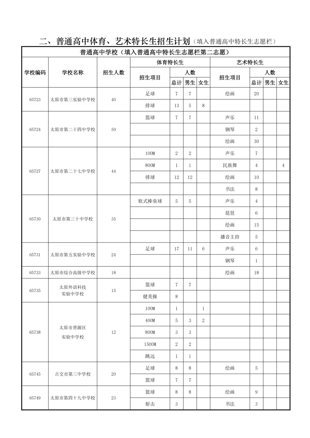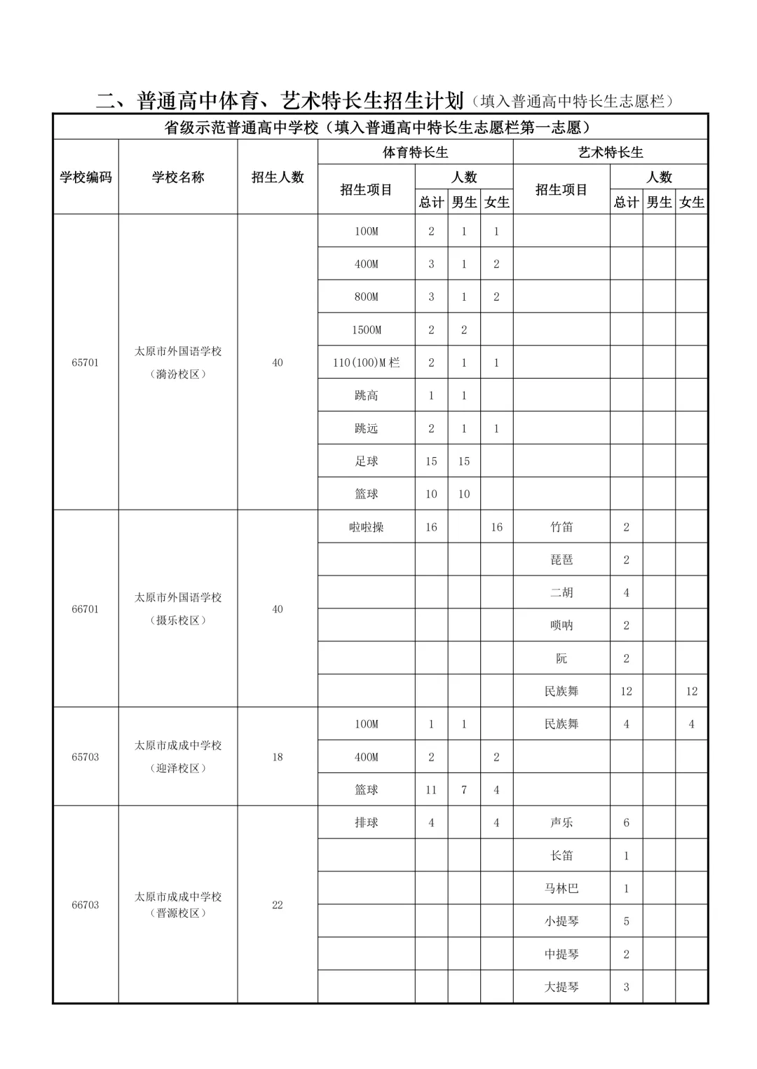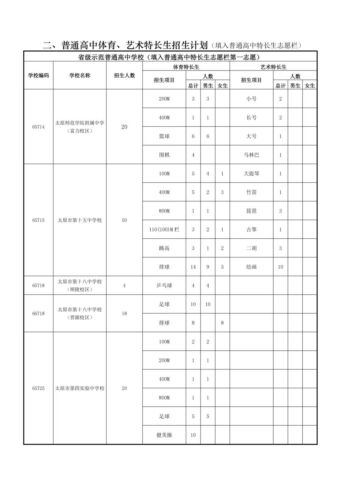 特长生是太原市为在体育、艺术、科技等方面有突出才能的考生设立的升学通道。招生项目涵盖田径、球类、声乐、器乐、绘画、机器人等。