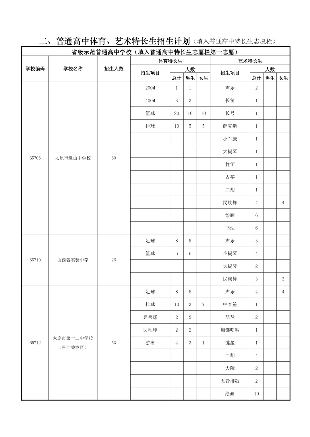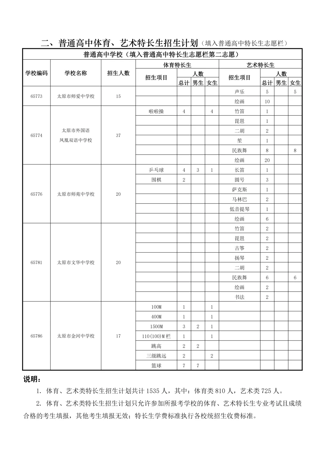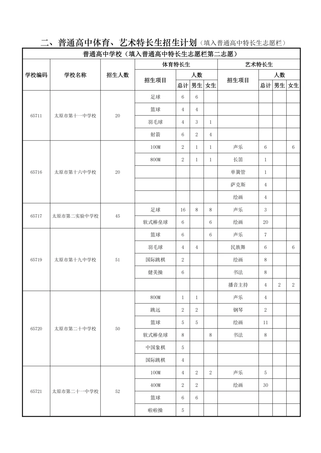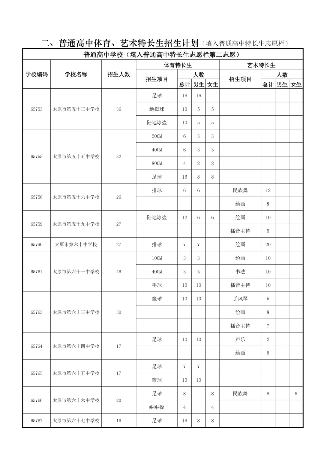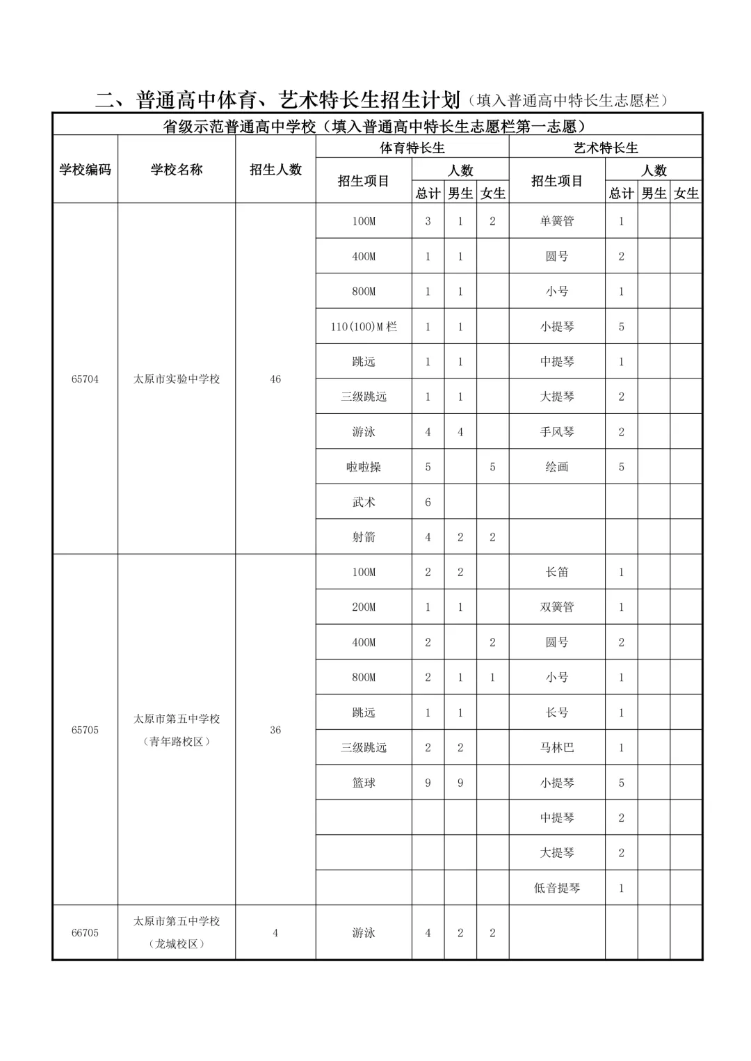 特长生是太原市为在体育、艺术、科技等方面有突出才能的考生设立的升学通道。招生项目涵盖田径、球类、声乐、器乐、绘画、机器人等。