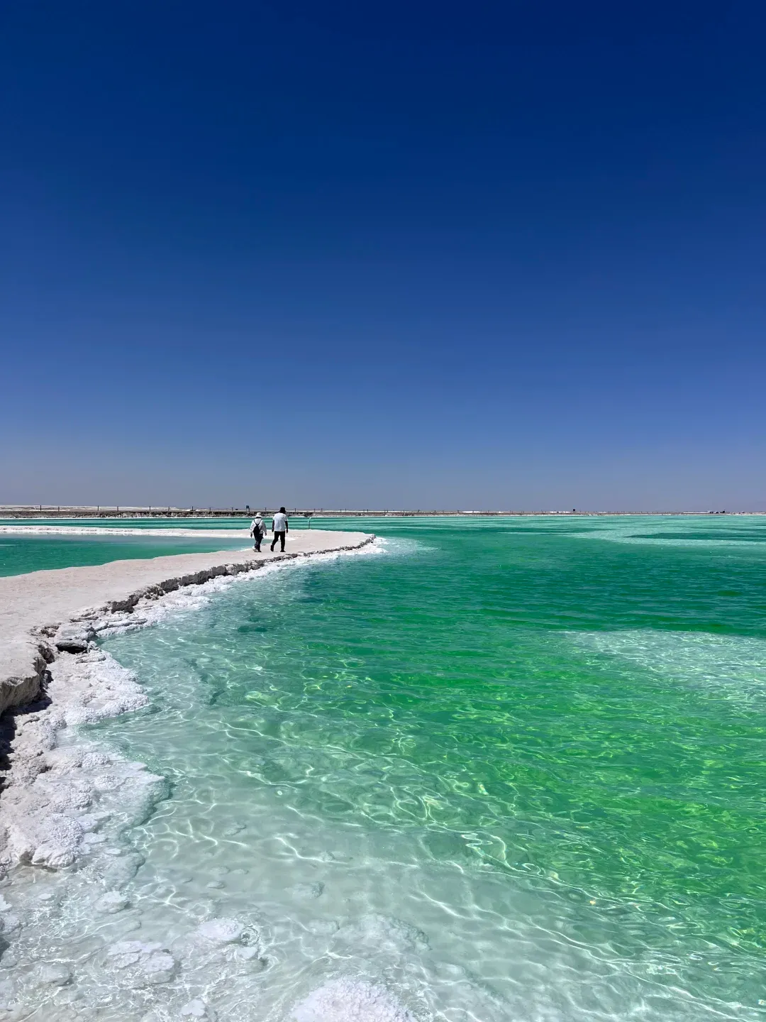 七八月太阳毒,盐湖晒得欢,记得防晒帽、墨镜、披肩全上,水要带足。