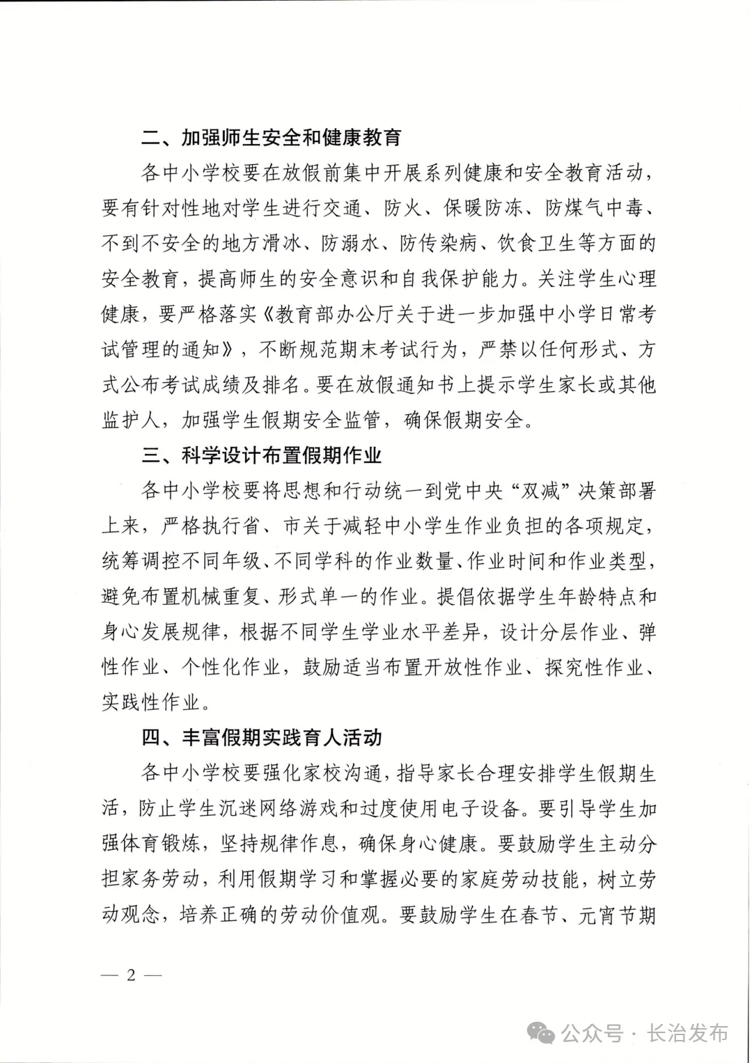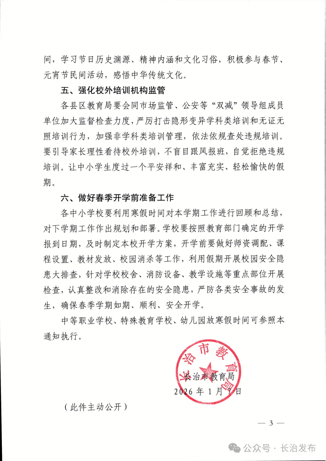 中等职业学校、特殊教育学校、幼儿园放寒假时间可参照本通知执行。