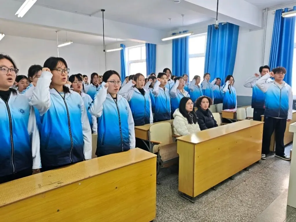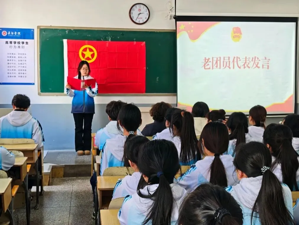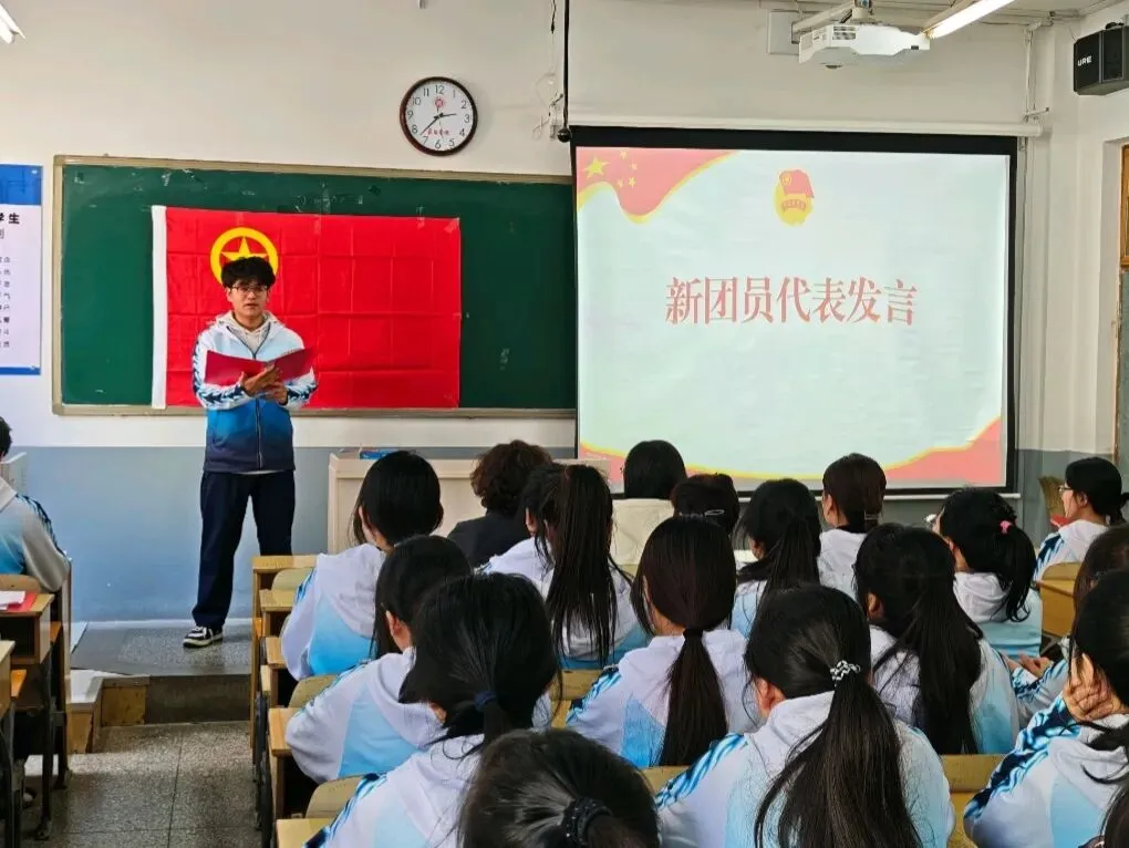 全体起立,在领誓人白云翔同学的带领下,全体新团员面向团旗,高举右拳,庄严宣读入团誓词。铿锵有力的誓言,是每一位新团员对团组织的忠诚告白,也是对责任与使命的郑重承诺。