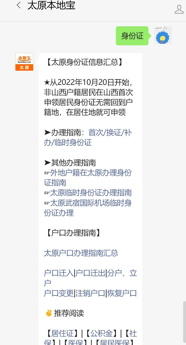 ➤可以在下方菜单栏点击微信办事、景点场馆、补贴|招聘获取你想看的内容:➤在“太原本地宝”公众号聊天框回复: