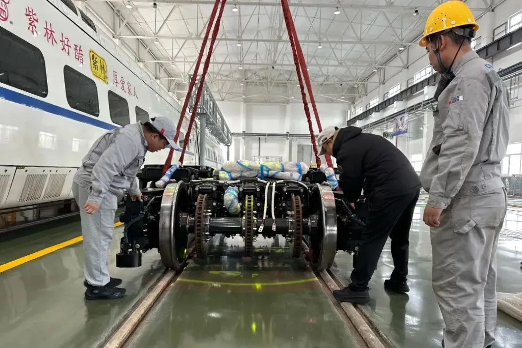 近日,太原车辆段大同南动车运用所首次顺利完成动车组转向架整体更换作业,标志着该所已具备关键核心部件的自主更换与深度检修能力,检修体系与技术实力迈上新台阶。