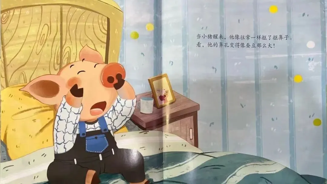 当小猪醒来,他像往常一样抠了抠鼻子。