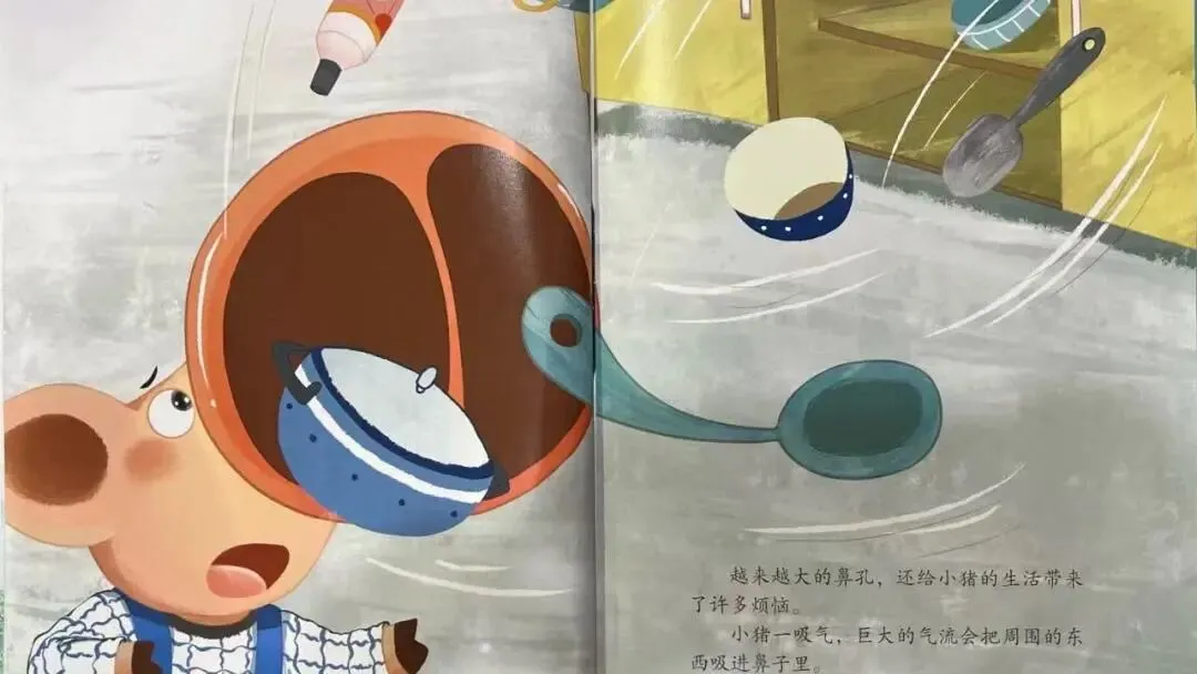 小猪一吸气,巨大的气流会把周围的东西吸进鼻子里。