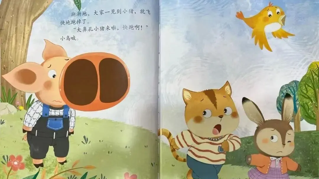 "大鼻孔小猪来啦,快跑啊!"小鸟喊。