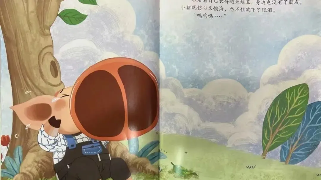 眼看着自己长得越来越丑,身边也没有了朋友,小猪既伤心又懊悔,忍不住流下了眼泪。