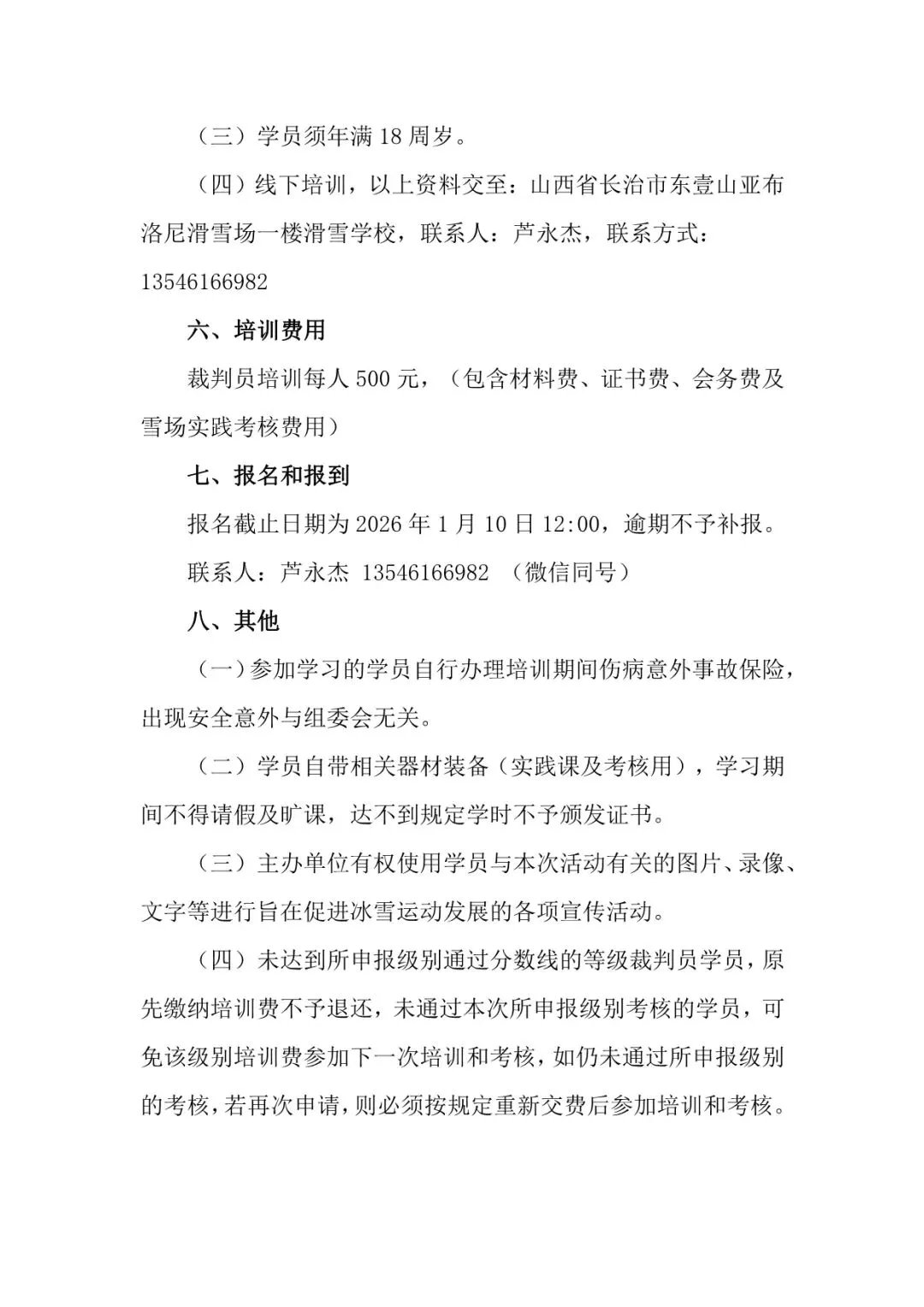 >长治市冰雪运动协会2026年滑雪裁判培训通知