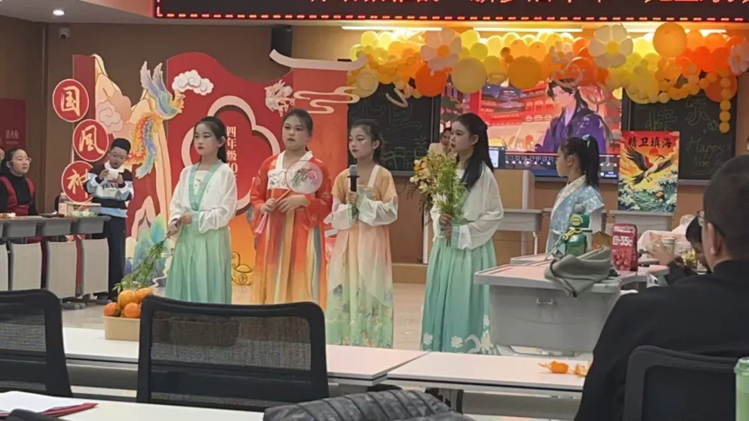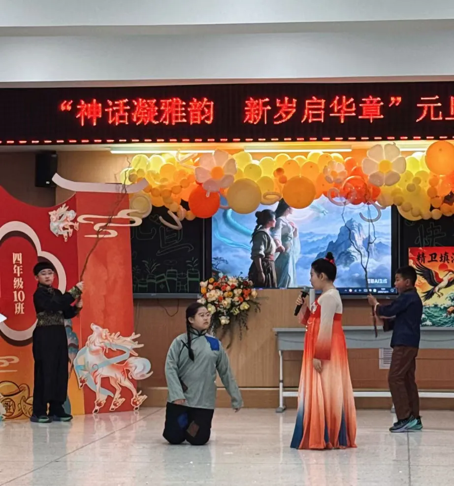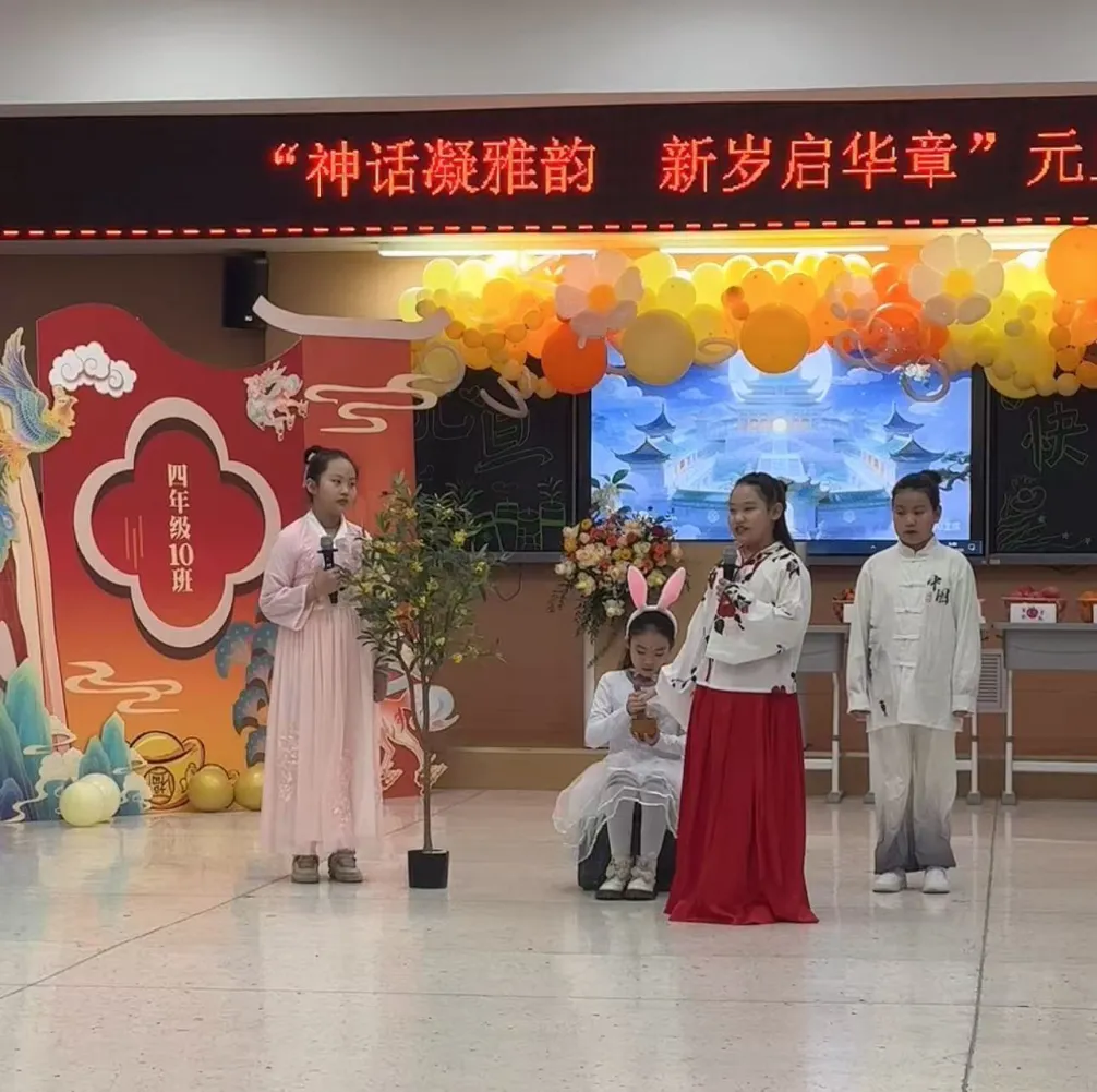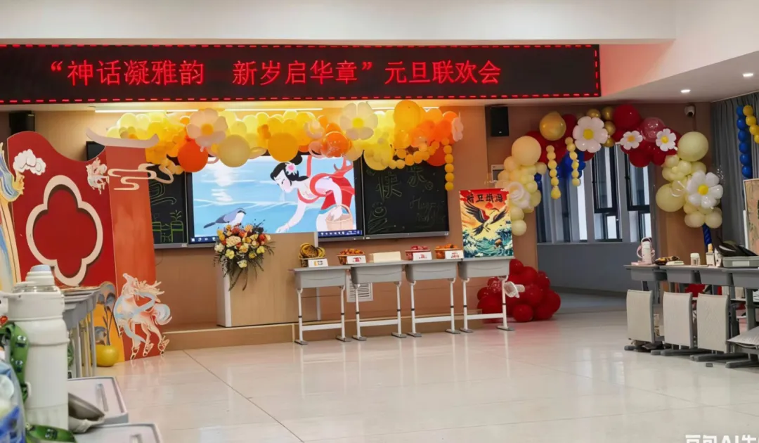 这场元旦联欢会,宛如一场神奇的神话之旅。它不仅让我们把神话故事记得牢牢的,更让大家的奇思妙想尽情绽放。我们笑着、闹着、表演着,收获的快乐与成长,比天上的星星还要多呢!