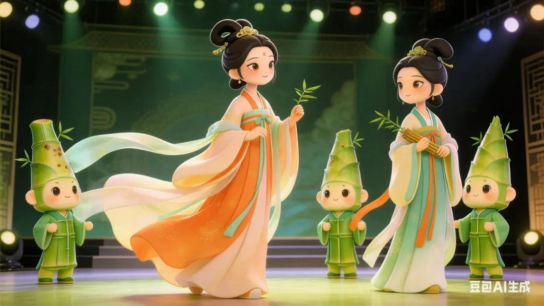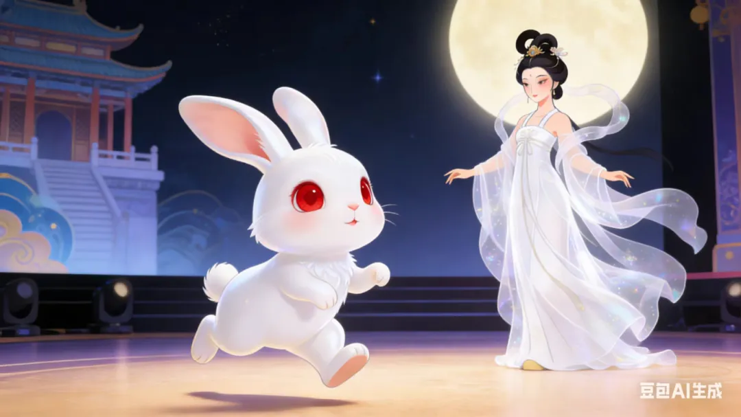 第一个节目是李柚墨导演的《玉兔捣药》,一开场就惊艳全场!小玉兔蹦蹦跳跳登场,红眼睛、长耳朵灵动摆动,仿佛真的从月宫而来;嫦娥姐姐身着飘逸白纱裙,仙气飘飘地站在一旁,美得让人移不开眼。听,小玉兔“咚咚咚”的捣药声,一下下敲在我们心上,仿佛真在为小朋友们的健康忙碌,剧组的小伙伴们实在太用心了!