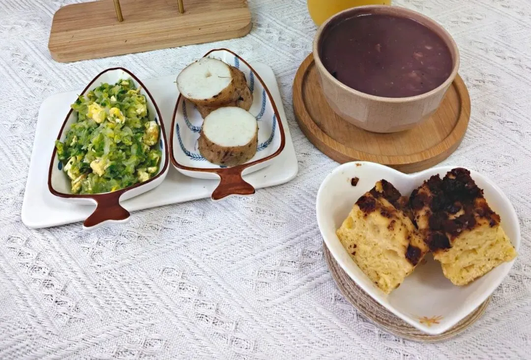 双菇扒油菜 花生紫米粥