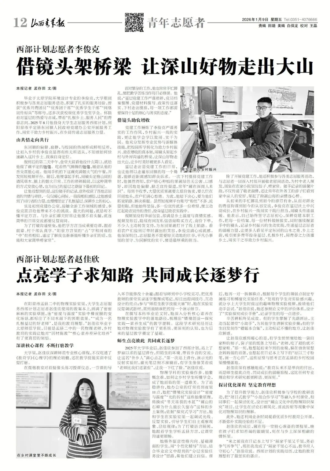 从初来的手忙脚乱到如今的游刃有余,从面对群众的青涩拘谨到如今的从容交流,李俊克在基层沃土中沉淀成长,在乡村振兴一线用实干践行担当,用镜头传递温暖。他表示,自己始终坚守志愿初心,深耕党建本职工作,把每一份档案、每一份材料做细做实,同时继续握紧手中的镜头,记录乡村振兴的生动实践,传递基层志愿者的温暖力量,让更多人看见平定东回的山水之美、乡土之韵,吸引更多青年投身基层、扎根乡村,用青春之力浇灌乡土,用实干之举助力乡村振兴。(山西青年报记者 孟存田 文/图)