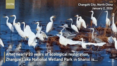 After nearly two decades of ecological restoration, Zhangze Lake National Wetland Park in Shanxi is once again alive with motion, as large flocks of white egrets return to overwinter. With their elegant form and snow-white plumage, these birds – long celebrated in Chinese poetry, painting, and art – symbolize grace, purity and good fortune.