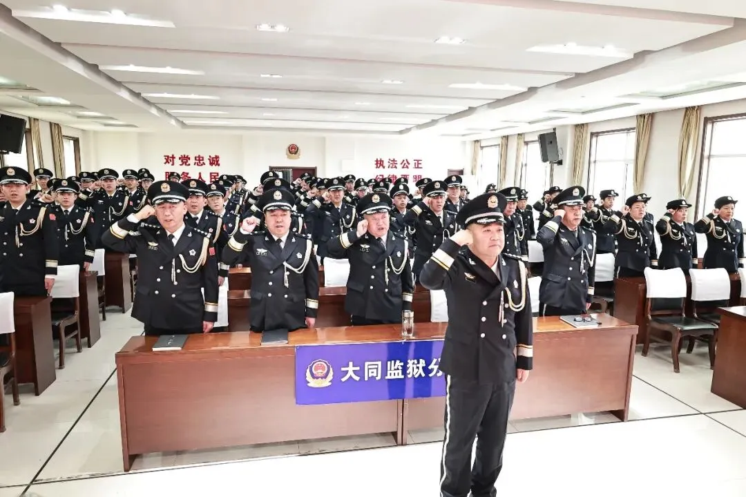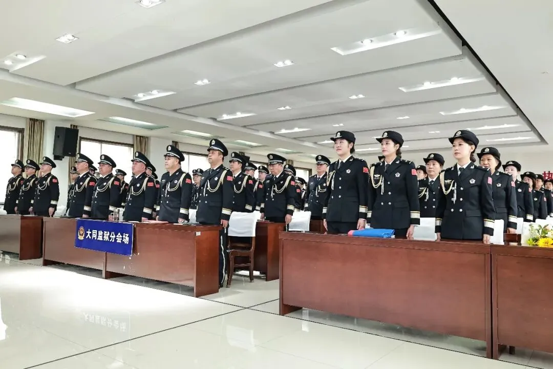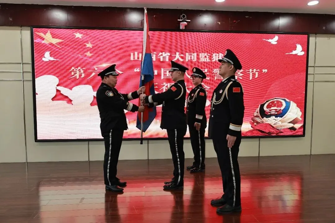 大会现场举行了庄重的新警入警仪式,新入职民警从退休民警手中接过象征责任与使命的警旗,正式迈入监狱人民警察队伍。他们纷纷表示,将以“时不我待、只争朝夕”的紧迫感,做一名让党放心、让人民满意的监狱人民警察,在实现新一届党委提出的“为了大同监狱明天更美好”的蓝图中,不负韶华、不辱使命!