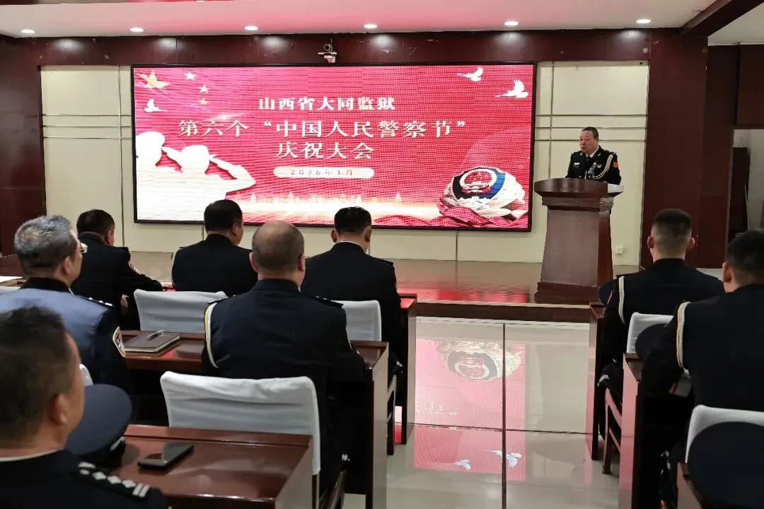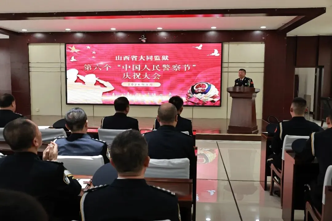 在第六个中国人民警察节到来之际,大同监狱隆重举行庆祝大会,全体民警齐聚一堂,重温初心使命、共话责任担当、凝聚奋进力量。