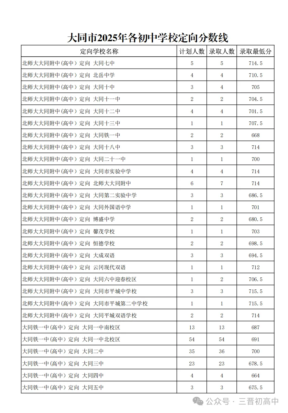 北师大大同附中从招生计划中划出100名招生指标,定向分配到平城区域范围初中学校;从招生计划中划出120名招生指标招收“智慧课堂班”,面向平城区、云冈区、云州区、新荣区招生;从招生计划中划出380名招生指标,面向平城区、云冈区、云州区、新荣区招生。