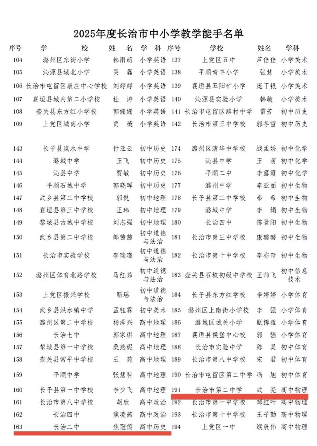 长治二中喜报——2025年长治市教学能手评选结果及“共鸣课堂”微课大赛获奖结果