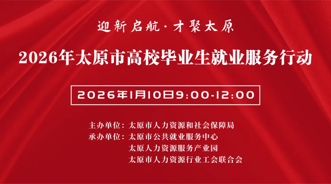 为深入贯彻党中央、国务院关于稳就业、保民生的决策部署,全面落实省、市促进高校毕业生就业创业工作要求,精准搭建高校毕业生与用人单位对接桥梁,助力毕业生实现更高质量、更加充分就业,太原市将举办2026年新年伊始首场高校毕业生就业服务行动专场招聘会。现就有关事项预告如下: