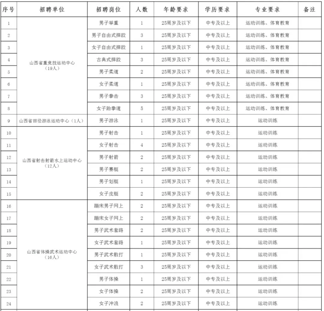 4、如实填写《山西省体育局直属单位2025年公开招聘优秀运动员报名登记表》1份(报名现场领表),每人限报1个岗位。