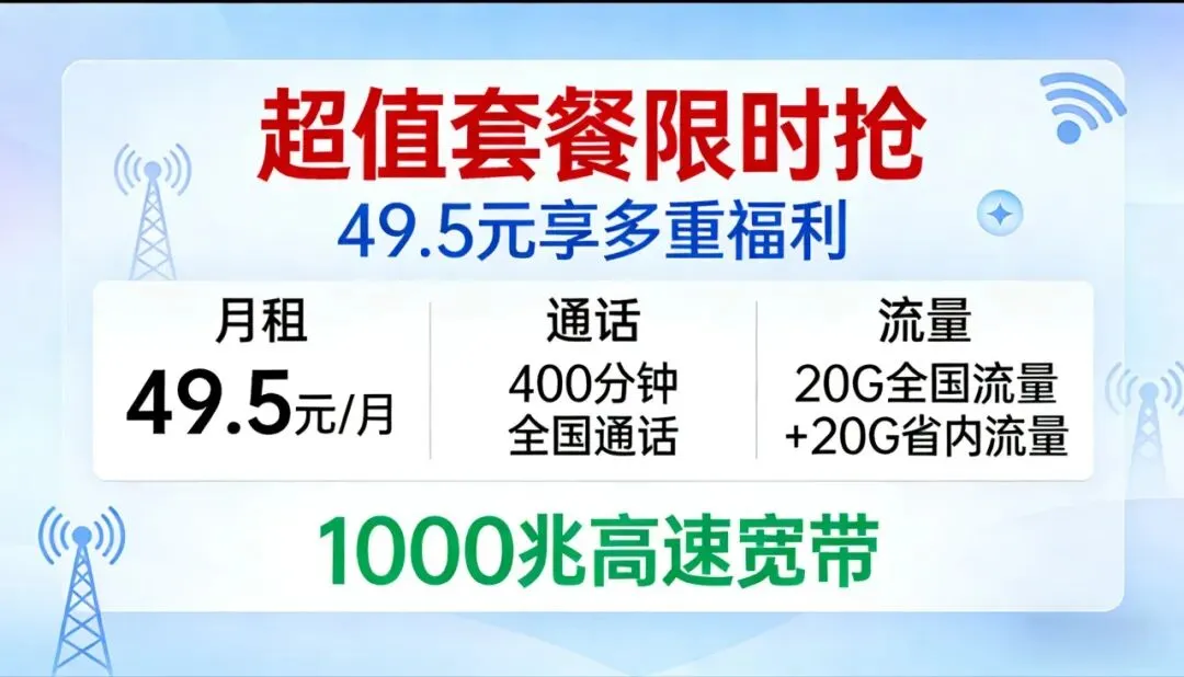 - 月租仅49.5元:无隐藏消费,长期稳定性价比,日均花费不到1.7元,轻松减轻通信负担;
