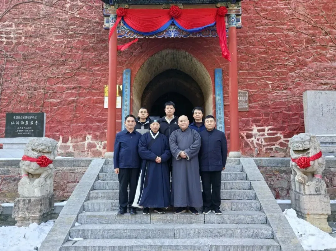 注: 今日佛光普照,慧日高悬,仙洞沟碧岩寺天高气寒,清风冽冽。太原北极宫住持刘罗鹏道长一行七人,踏幽而至,问道访真。真祥山门恭迎,以古联相示:“轩辕问政伊启访贤庄子经载神居处,唐宋兴道明清盛佛徽宗驾游姑射山”,一联道尽千年文脉,自《山海经》姑射神女,至庄子笔下逍遥神人,再及宋徽宗御笔遗踪,历史层叠,如云如雾。刘道长立于山门前,心绪如泉。幼时父亲口中仙洞沟的传说,祖母慈悲济世的道风,早已在他心中种下清净道根。今日故地重来,既是问道,亦是归源。他忆起当年为求大道,舍教职、入深山、闭关于灵石石膏古境的三年寂守,风霜炼心,星月证悟。眼前真祥法师安贫乐道,清修于幽壑,恰似自己昔日光景。道者同怀,不在境遇,唯在一心。山风拂过岩壑,仿佛传来太古的清音。刘道长默然凝望,昔年闭关时的孤寂与笃定,与此刻云山之间的苍茫气象,悄然重合。修行之路,或隐于市,或藏于山,终究是向内的长途;而真道所在,亦在历史烟云里,在自然清气中,在每一次与天地共鸣的当下。临别时,暮色渐合,远山如黛。道长执手与真祥法师作别,两袖清风里,已携走一壑烟霞,满怀澄明。道缘深浅,不在聚散,而在心心相照的刹那,与天地共久长。