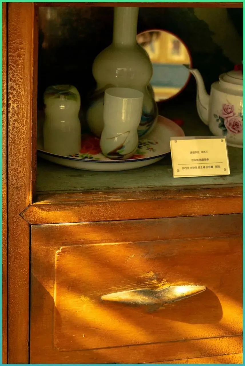 镜头一.转,是木柜子里摆得规.规矩矩的家什茶壶,杯子,.瓶瓶罐罐。那.种老家.具的木纹和光泽,一看就有岁月.打磨过的味道。