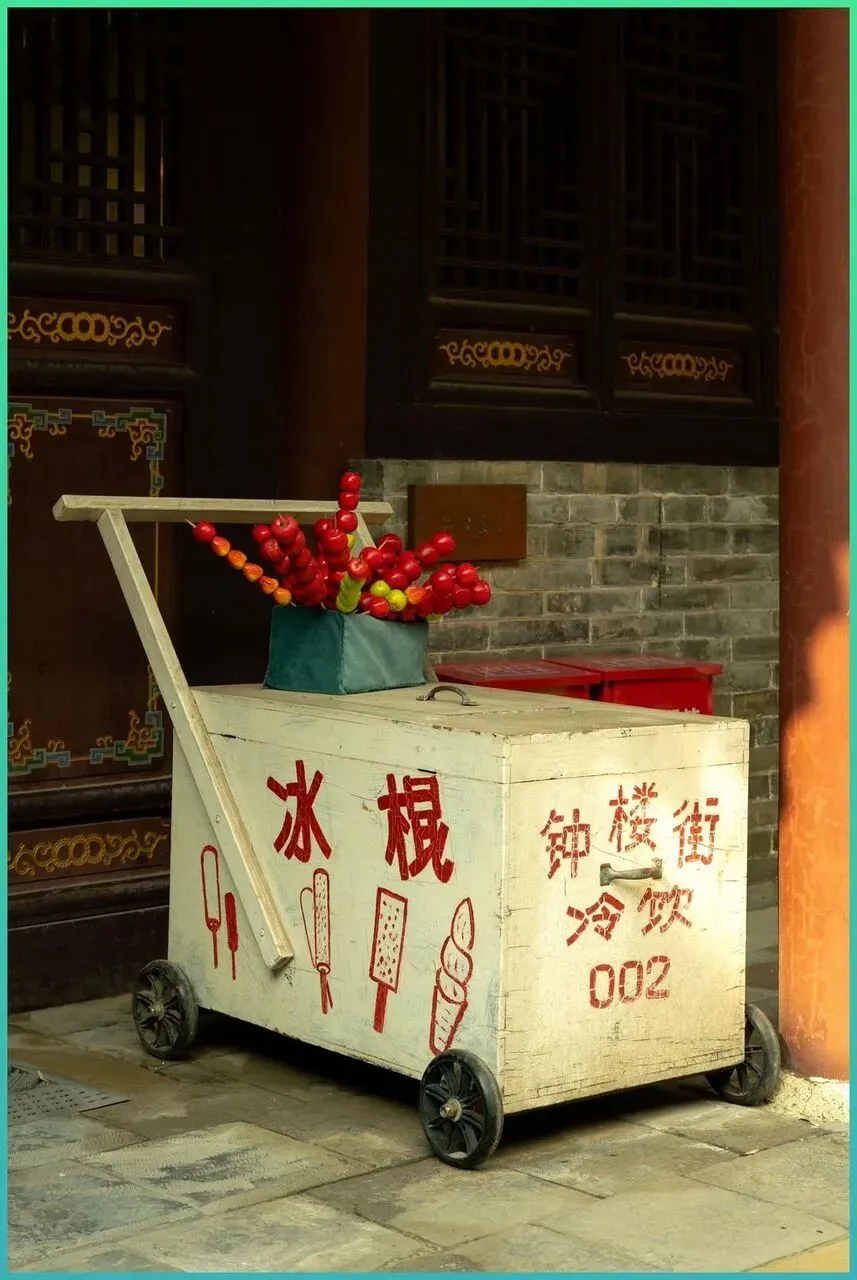 最后这张太街头了小推车,手写.大字,画着冰棍和雪.糕的图案,旁.边一串红红的糖葫芦模型。你别说,看一眼嘴里就开.始分泌口.水.。