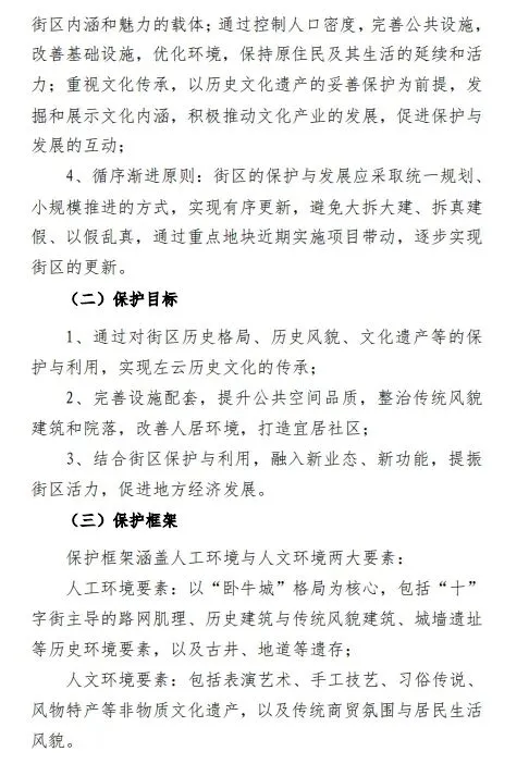 为深入贯彻落实历史文化遗产保护相关法律法规,系统保护左云古城“卧牛城”格局、明清街巷肌理及各类历史遗存,统筹推进街区保护与民生改善、文化传承,我局组织编制完成《左云县历史文化街区保护规划(2021-2035年)》(以下简称《规划》)。