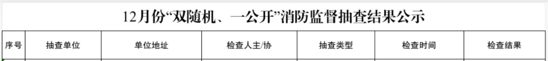 为确保火灾形势持续平稳,全面推行“双随机、一公开”消防监督管理模式。长治市消防救援支队根据年度抽查计划和进度,在2025年12月份对全市消防安全重点单位和非消防安全重点单位进行了监督抽查,现将12月份“双随机、一公开”消防监督抽查结果公示如下: