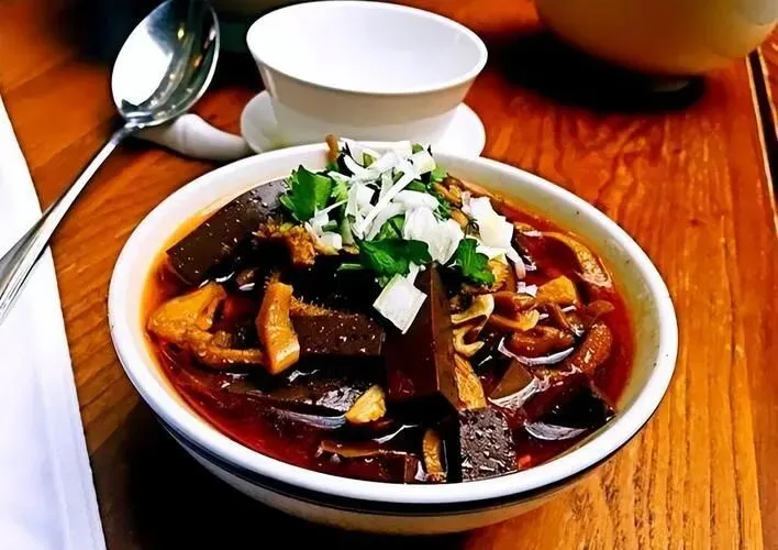 配的是烧饼,硬邦邦那种,掰成小块往汤里泡。用勺子连汤带料往嘴里送,羊杂软烂,汤�的眉毛都要掉下来。一套15块,吃完浑身冒热气,零下10度的天都不觉得冷。