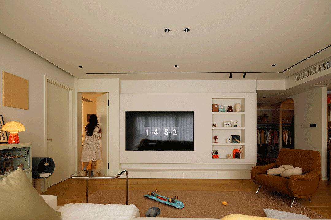 设计壁龛展示心爱手办,底部抽屉替代传统电视柜