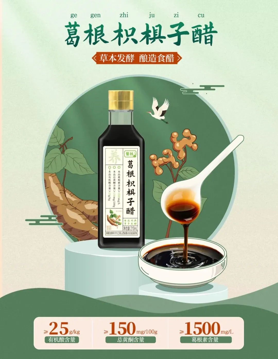 特征成分:葛根素含量≥1500mg/L,总黄酮含量≥150mg/100g,有机酸含量≥25g/kg;