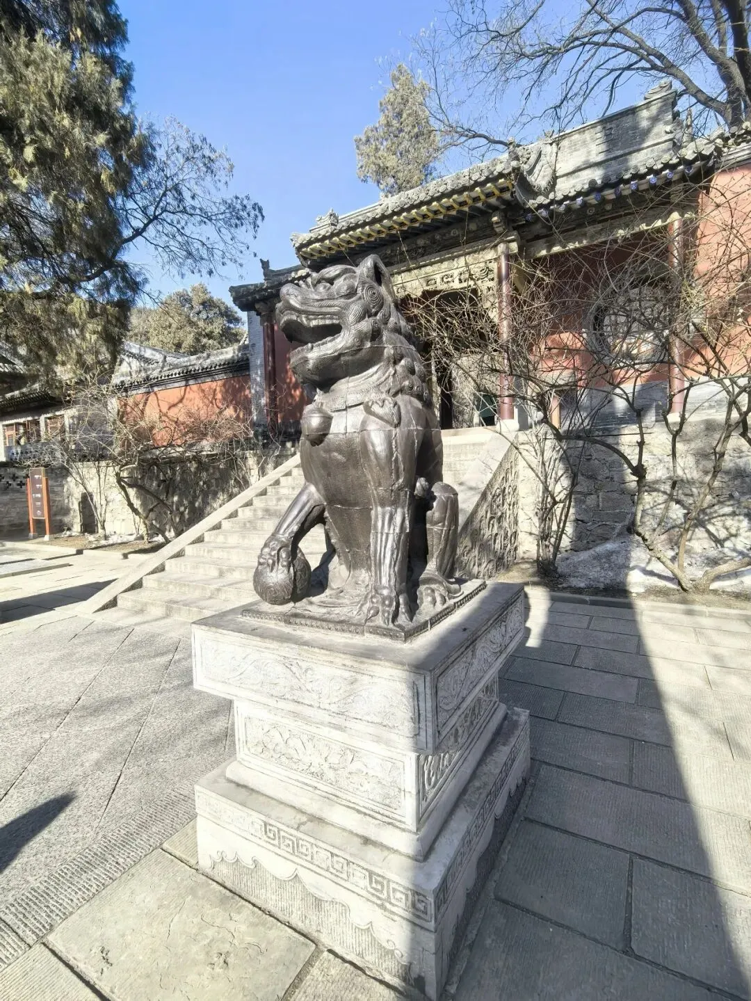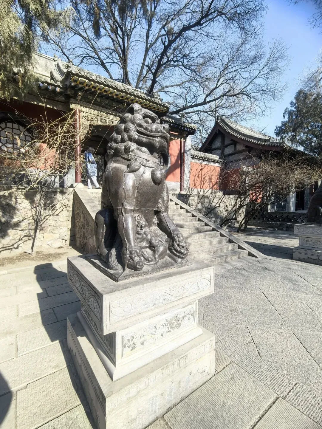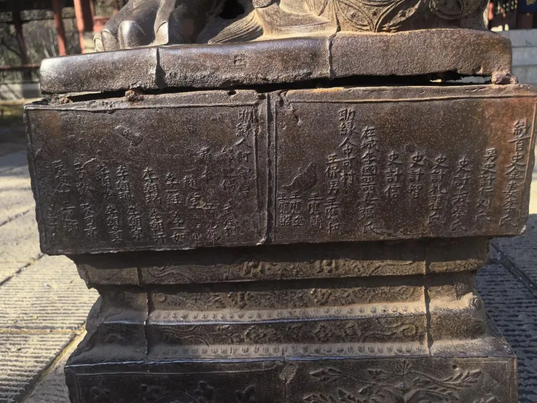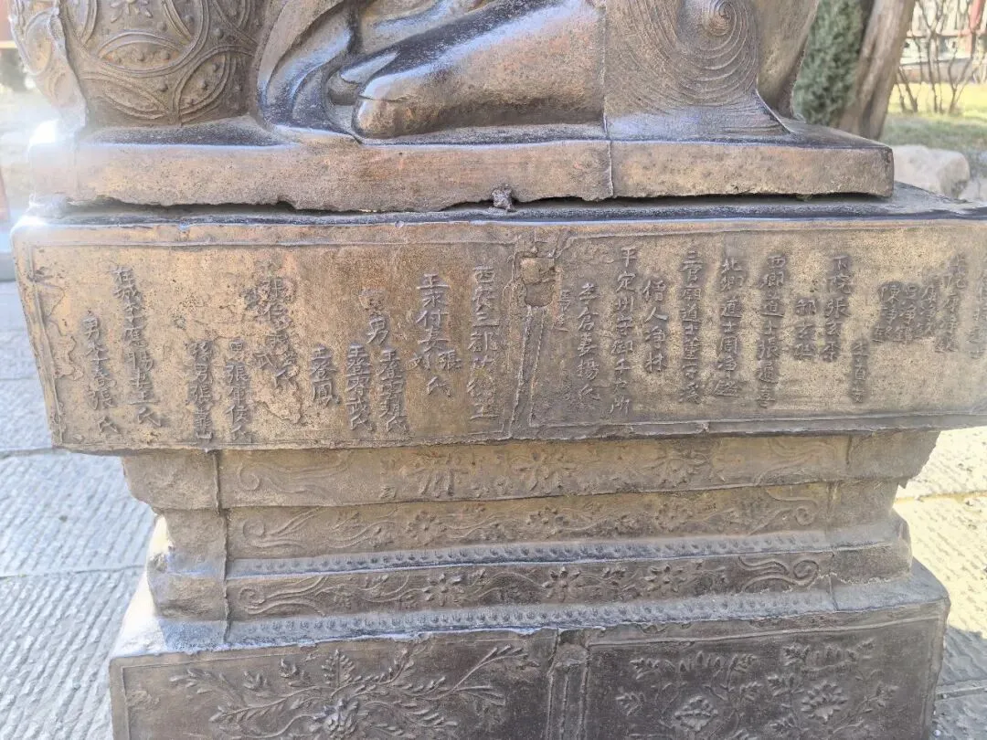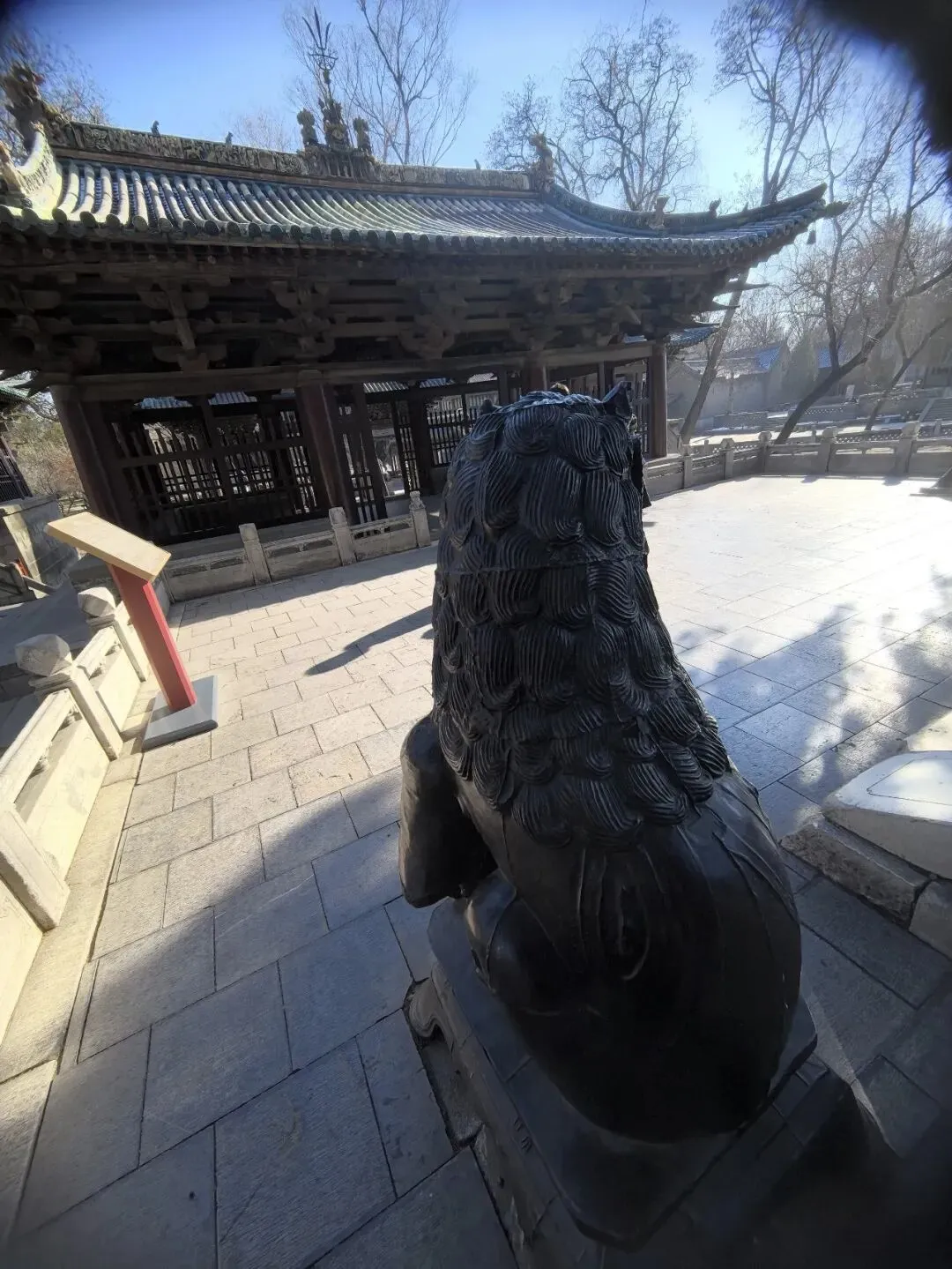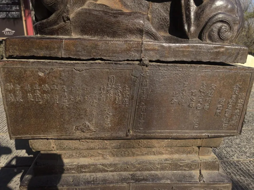 水镜台东侧的铁狮也不甘示弱,万历九年的铭文,是它独有的身份标识。还有关帝庙前的铁狮,虽未留下明确纪年,却凭着明代特有的造像风格,跻身这十二只铁狮的阵列。