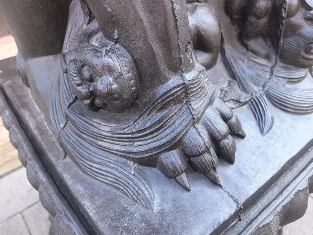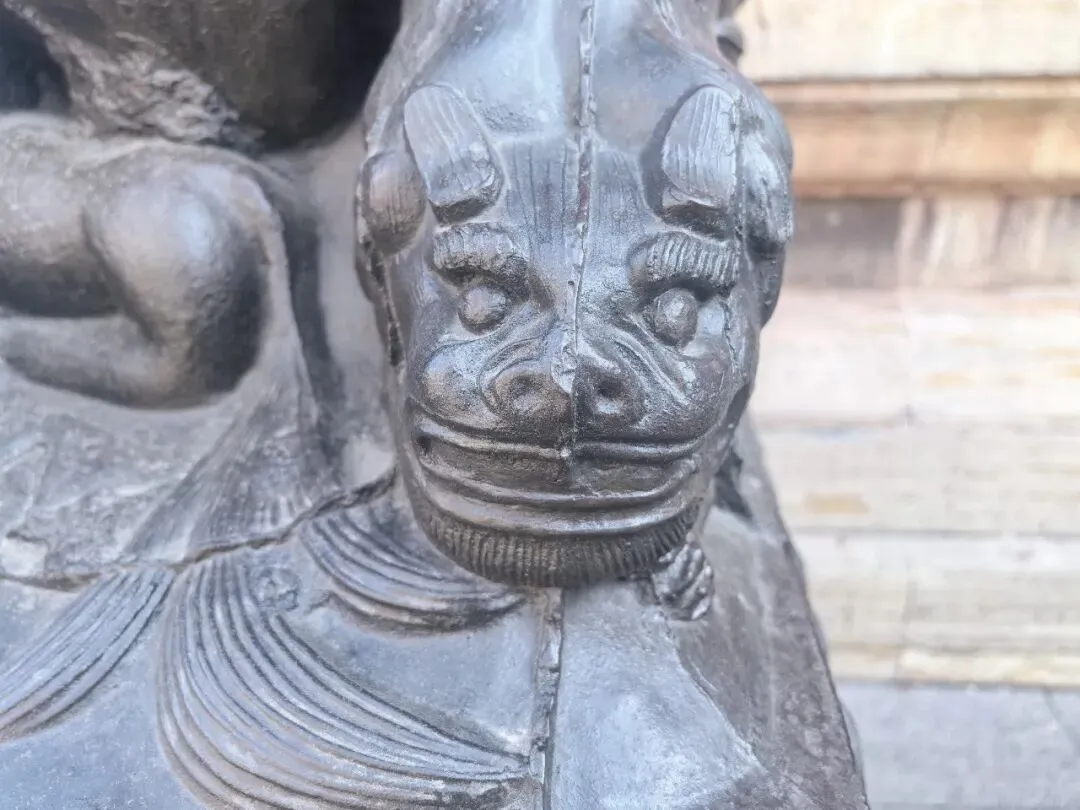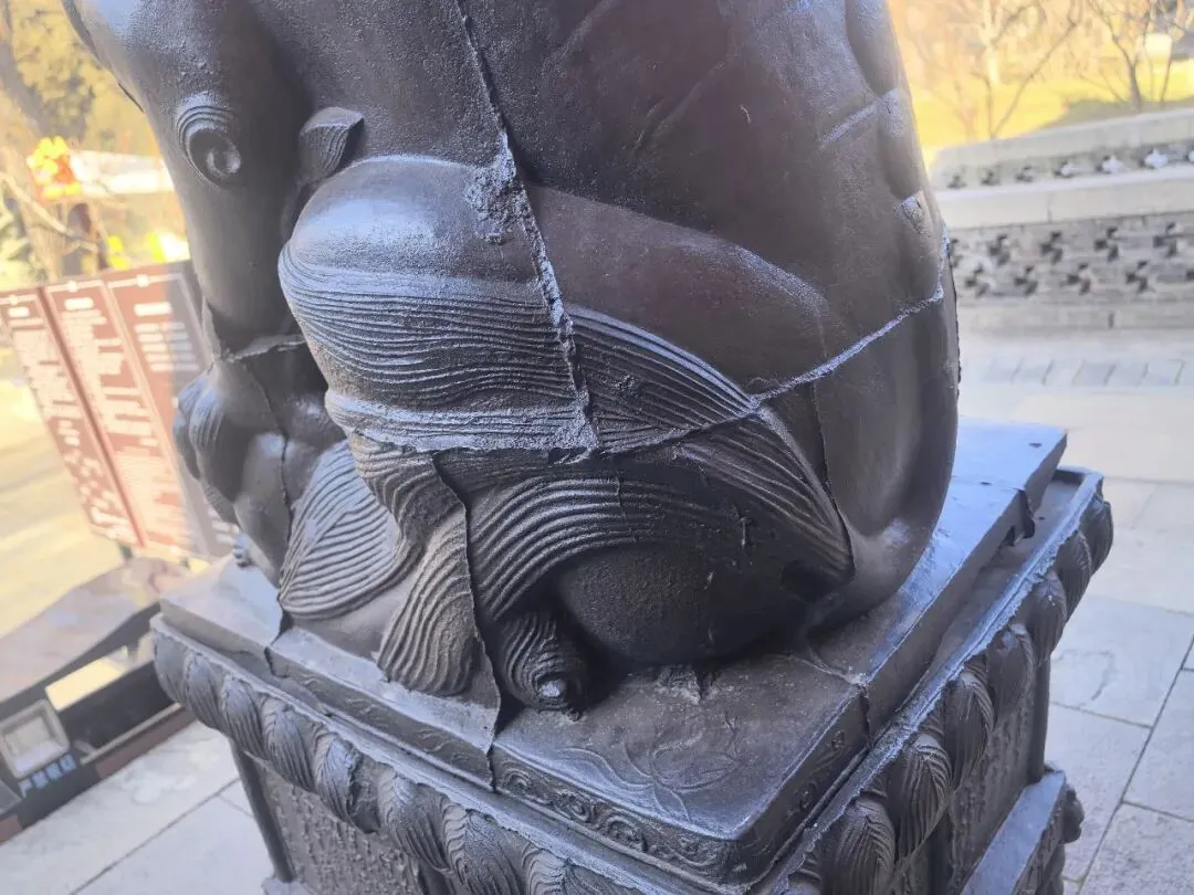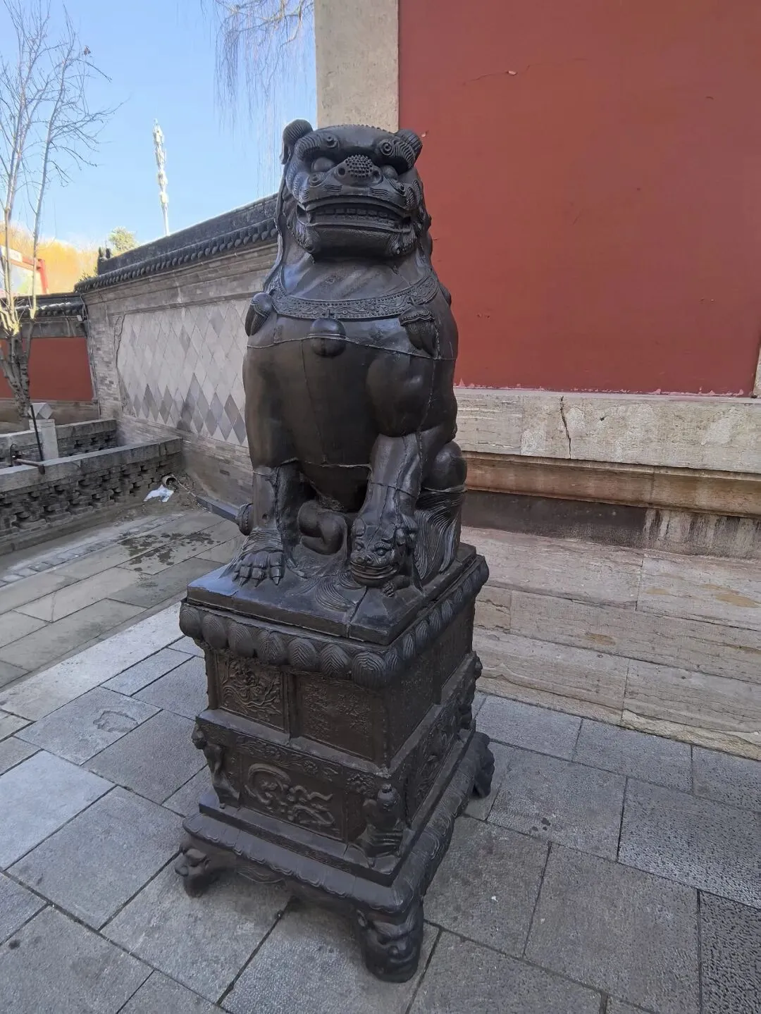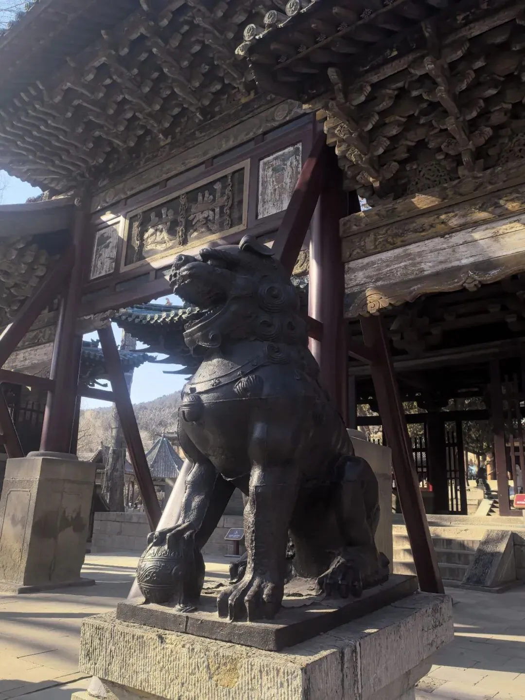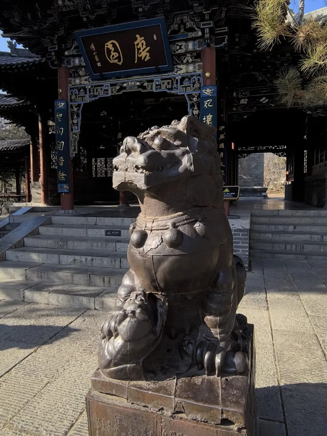 水镜台东侧的铁狮也不甘示弱,万历九年的铭文,是它独有的身份标识。还有关帝庙前的铁狮,虽未留下明确纪年,却凭着明代特有的造像风格,跻身这十二只铁狮的阵列。