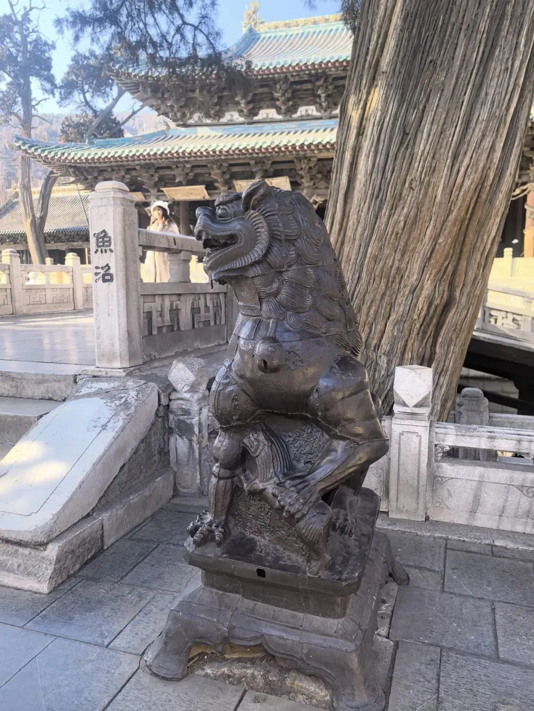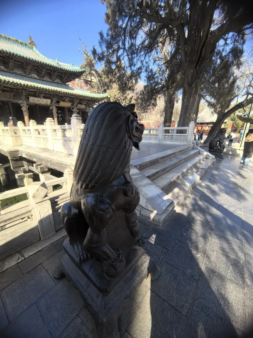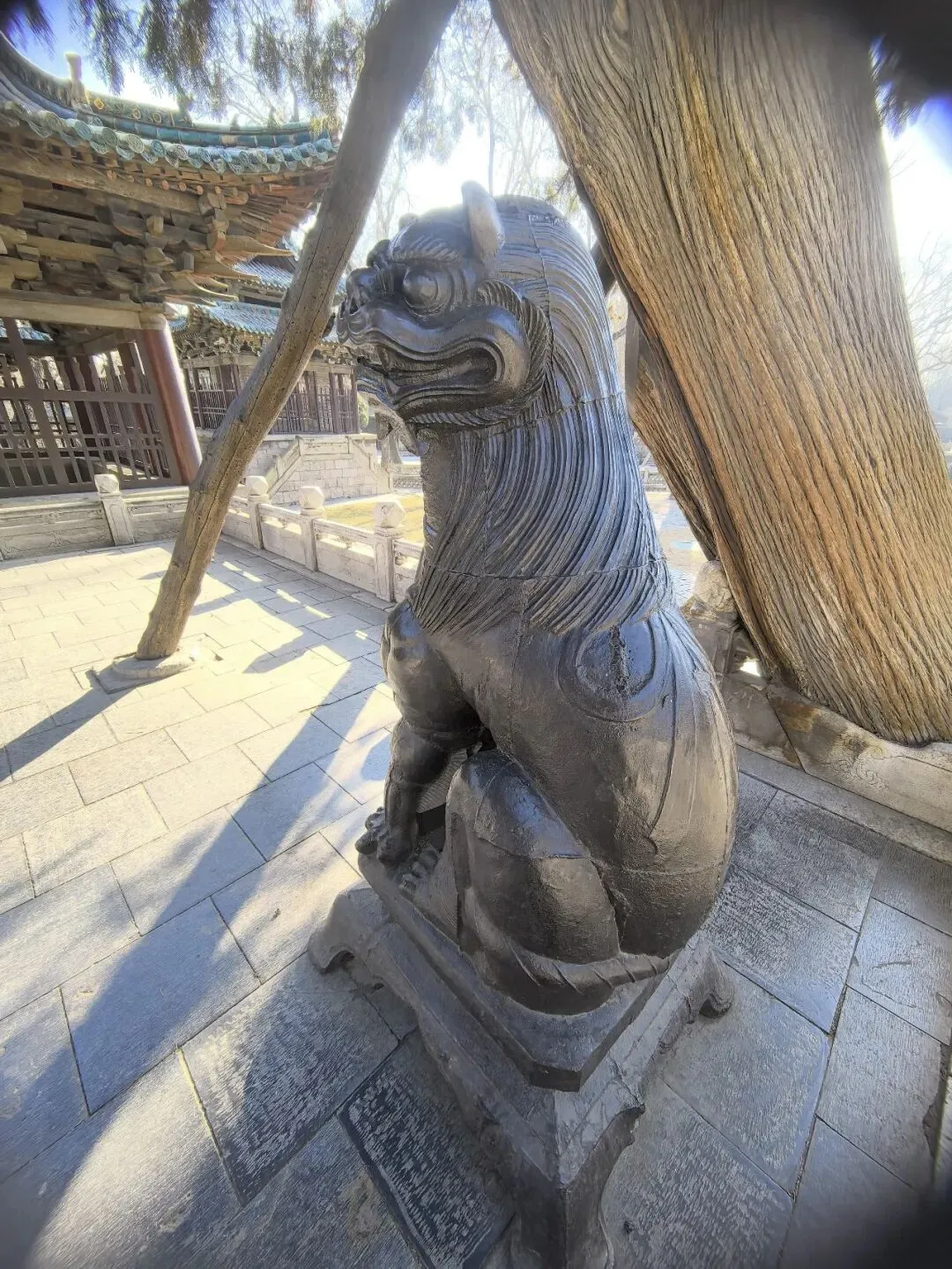 穿过岁月的风,走到对越坊前,一对威风凛凛的铁狮正镇守着中轴线。它们没有留下明确的纪年铭文,却凭借粗犷的造型、雄浑的气势,被学界归入金代遗存。虽无铭文铁证,但与宋金时期晋祠的文物风格一脉相承,默默诉说着那个战火与匠心并存的年代。