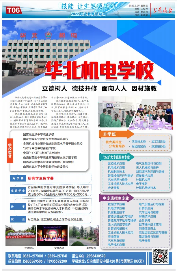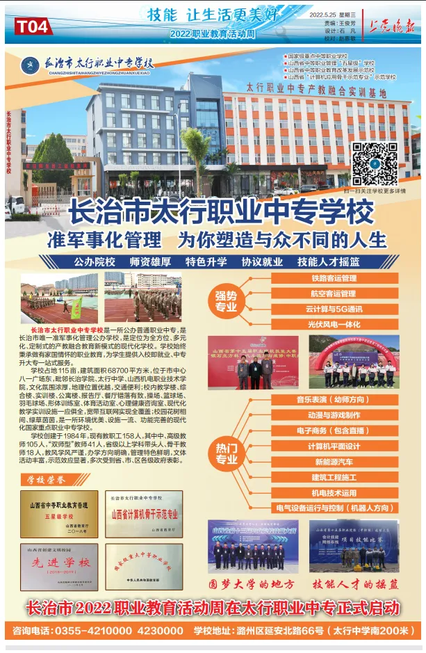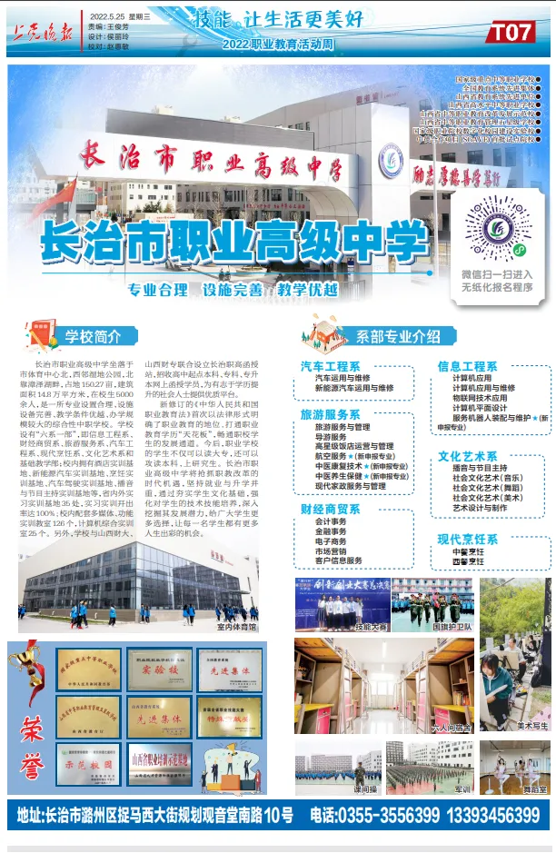 另外,学校与山西财大、山西财专联合设立长治职高函授站,招收高中起点本科、专科、专升本网上函授学员,为有志于学历提升的社会人士提供优质平台。长治市职业高级中学将抢抓职教改革的时代机遇,坚持就业与升学并重,通过夯实学生文化基础,强化对学生的技术技能培养,深入挖掘其发展潜力,给广大学生更多选择,让每一名学生都有更多人生出彩的机会。