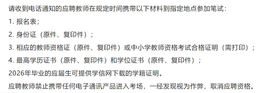 招聘教师笔试通知