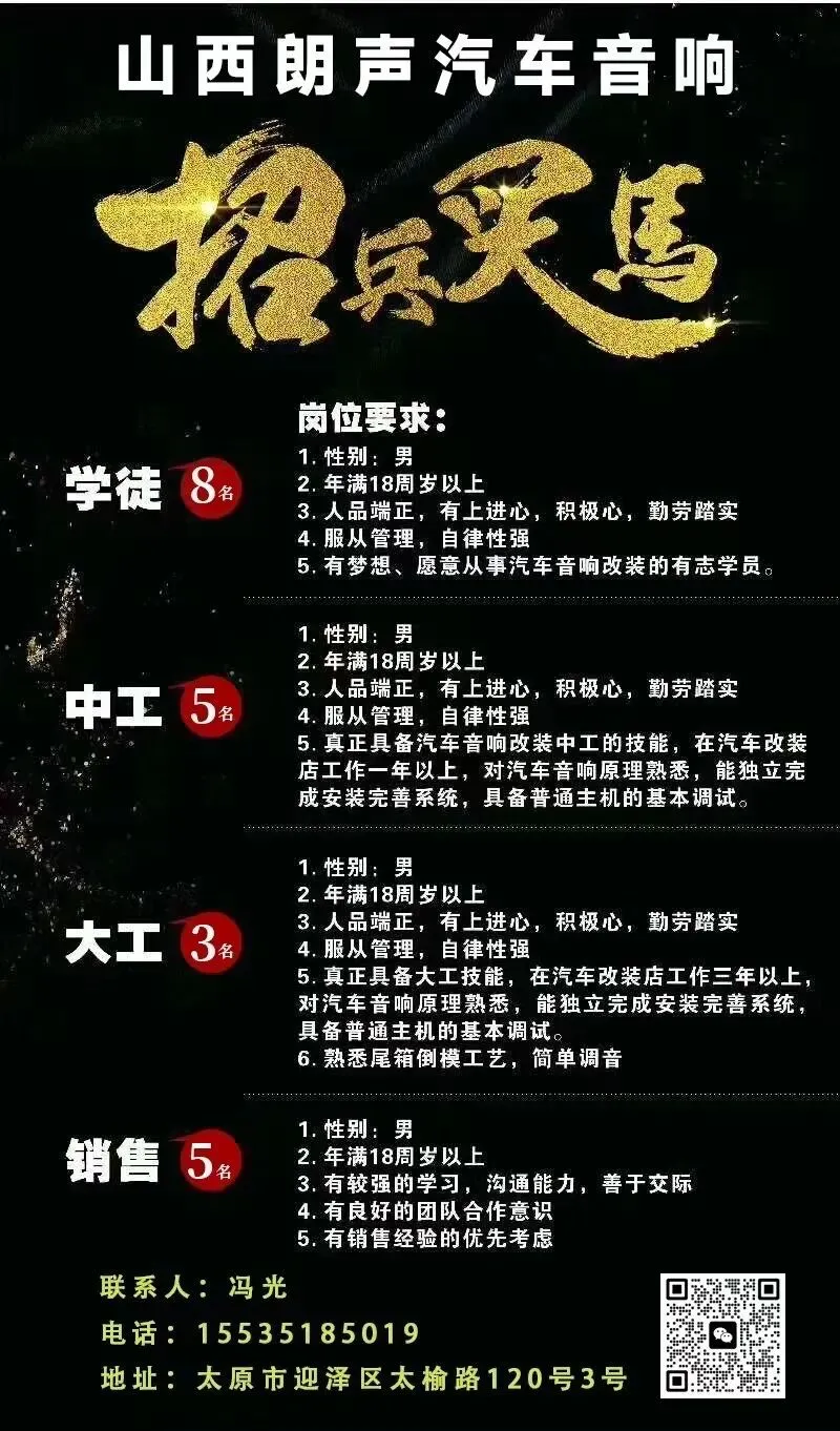 【二】佛山酷车旋律汽车音响旗舰店招聘: