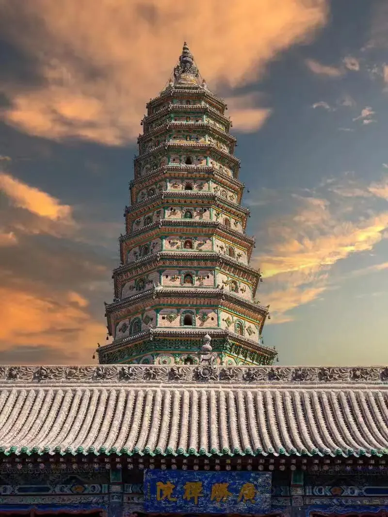 接着杀向广胜寺,掐准十一点半,阳光打在飞虹塔上,琉璃像火一样燃起来。