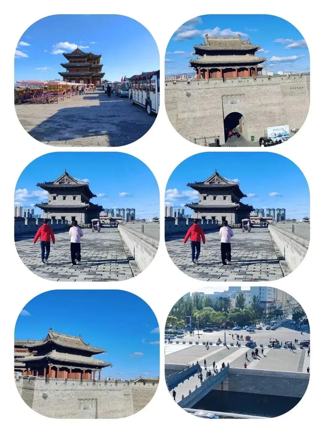 再往前走,眼前的景象再次让我惊叹不已,城墙竟如此宽阔,上面不仅有摆渡车往来穿梭,还有共享单车整齐地排列着,等待游客的骑行。那些错落有致的城楼,如箭楼、望楼、角楼等,在古代,它们曾是坚不可摧的防御体系,守护着这座古老的城池。