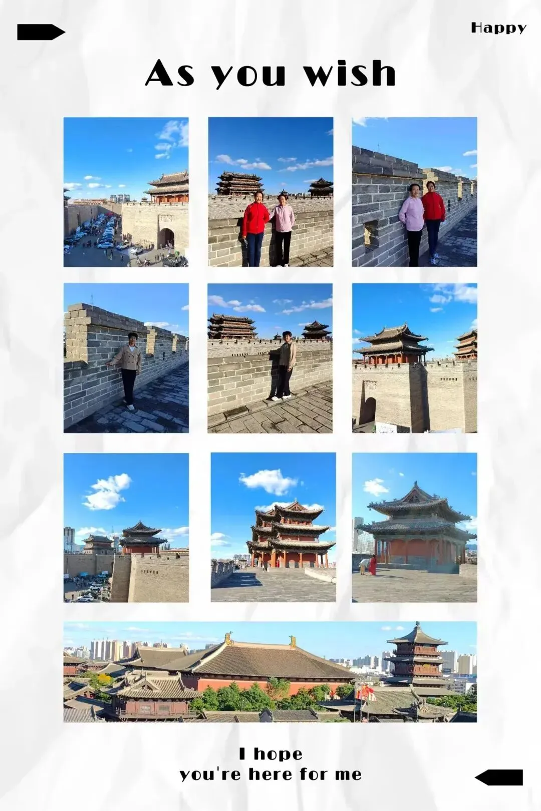 大同古城墙,这座北魏都城的旧址,历经了隋、唐、五代、辽、金、元等朝代的洗礼,到明朝时,大将军徐达在此基础上进行了扩建,使其更加坚固。我抚摸着这些青石砖,仿佛能感受到古人的智慧与毅力。在古时候,这里是金戈铁马、烽火连天的战场;而现在,它已经成为人们休闲娱乐的好去处,也成为了连接古今的文化桥梁。这样的变化,让我们更加珍惜眼前的和平与美好生活。